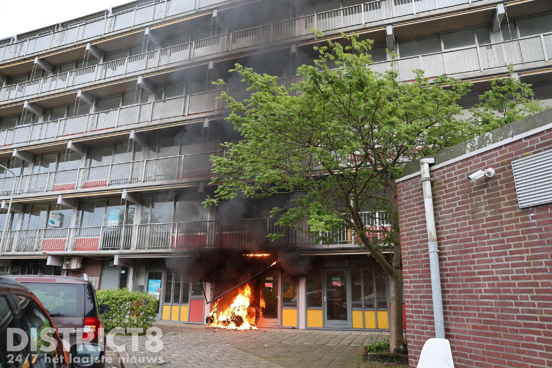 Scooterbrand slaat over naar leegstaand pand Catharina van Rennesstraat Den Haag