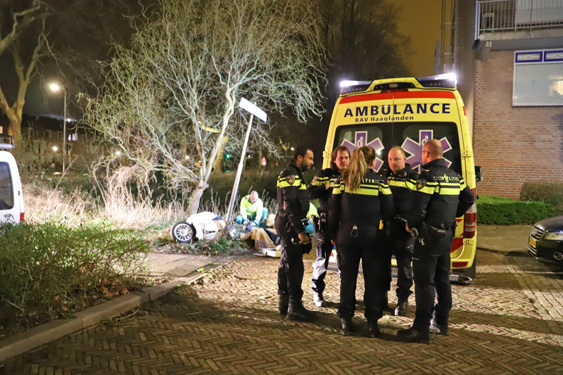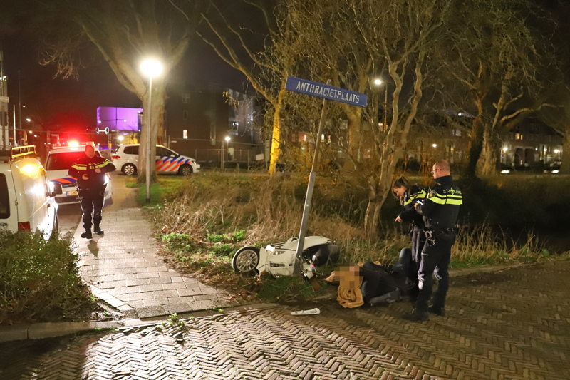 De man had zaterdagavond een scooter gestolen en ging ervandoor. De politie kwam de man op het spoor en poogde de man te stoppen. Echter ging de dief ervandoor met een achtervolging tot gevolg. De politie kon de scooterdief uiteindelijk op de Anthracietplaats in Delft pakken, nadat hij crashte. Hij probeerde een stoeprand op te gaan, maar kwam kwam ten val en tegen een metalen paal tot stilstand. De man raakte hierbij gewond aan zijn been. Een ambulance werd opgeroepen.