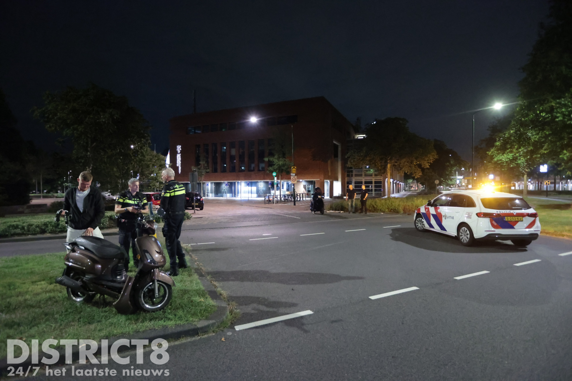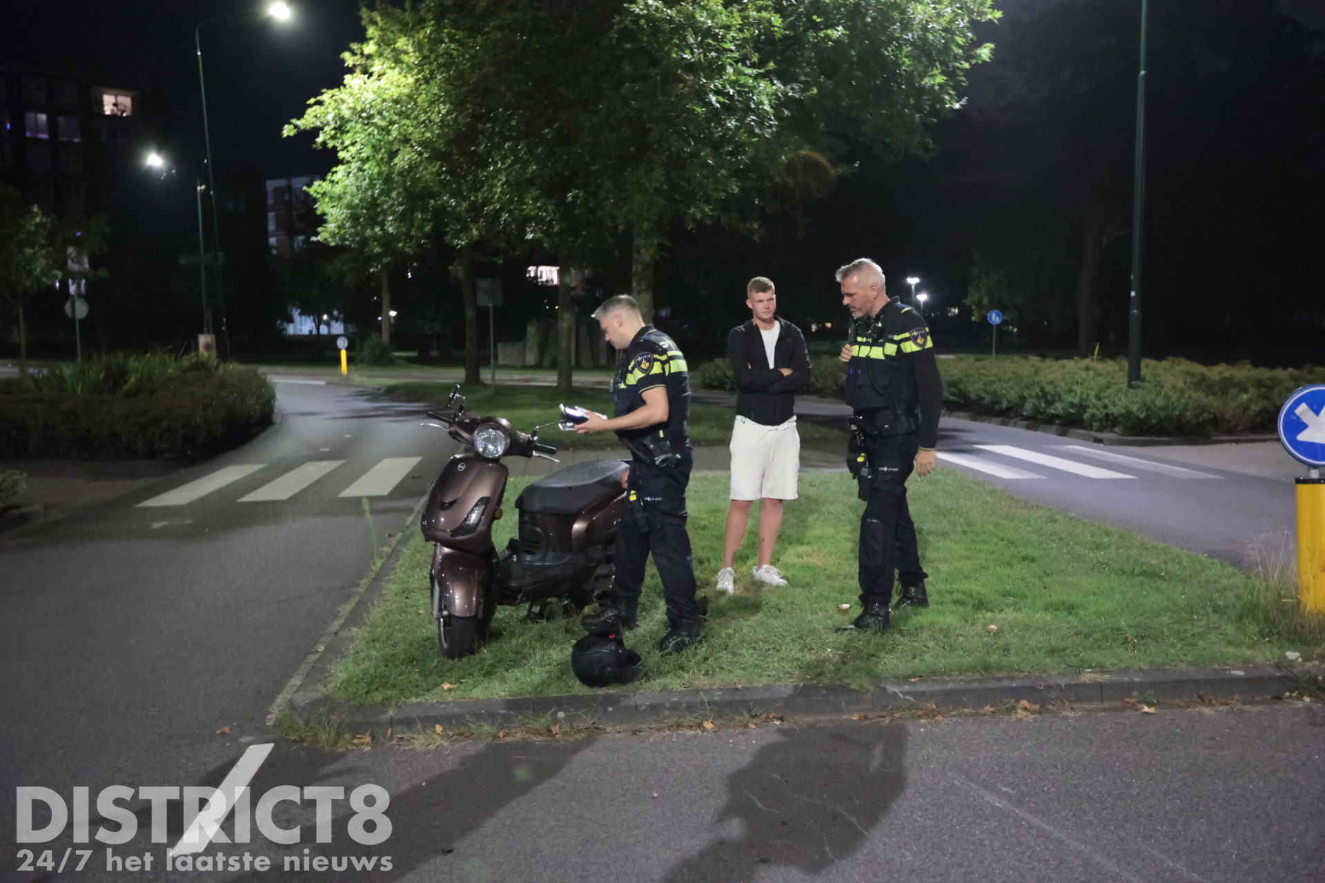 Na een blaastest bleek dat de scooterrijder onder invloed was van alcohol. De politie heeft de scooterrijder aangehouden op verdenking van het rijden onder invloed.