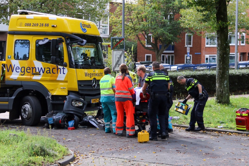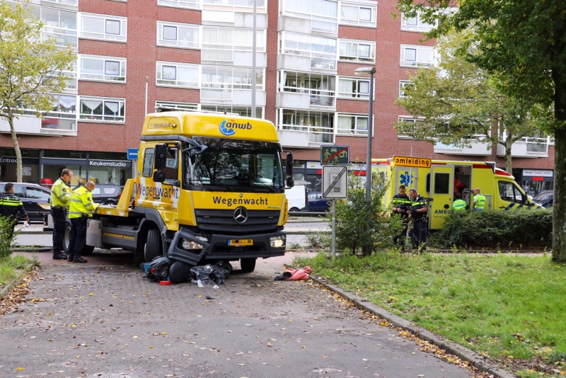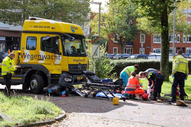 Rotterdam – Een man, opzittende van een scooter is donderdagmiddag zwaar gewond geraakt nadat hij met zijn scooter aangereden werd door een afslaande vrachtwagen.