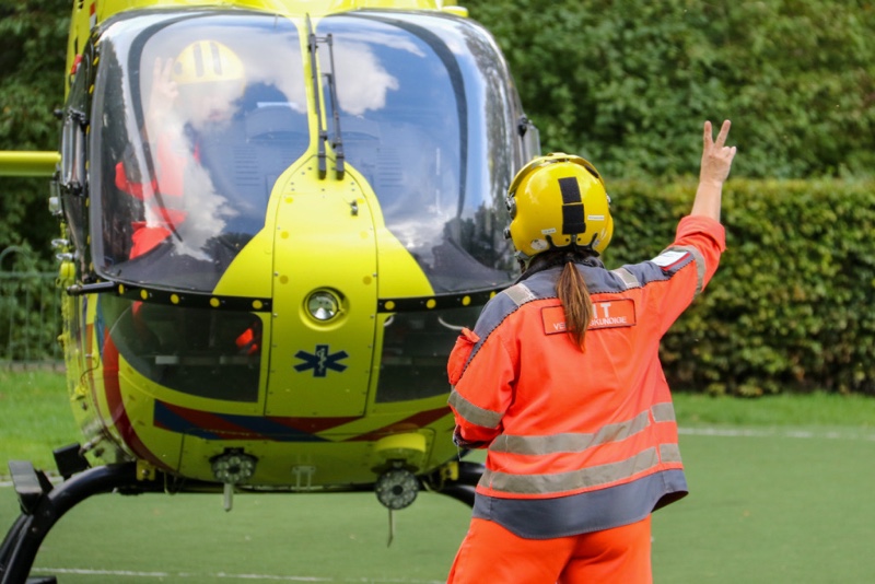 Twee ambulances en de traumahelikopter kwamen ter plaatse om het slachtoffer te helpen. De man is met spoed overgebracht naar het ziekenhuis, de trauma arts reed mee met de ambulance.