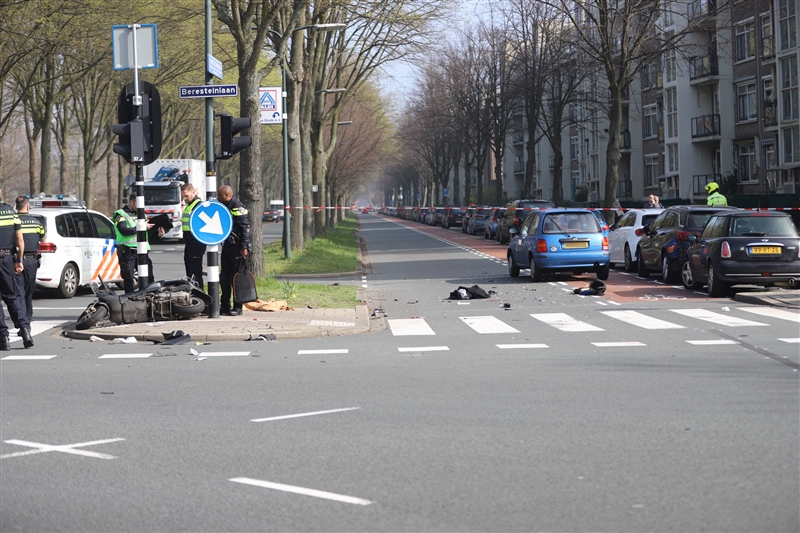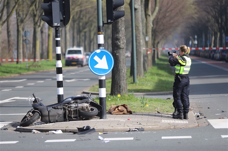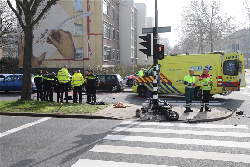 Den Haag – Een scooterrijdster is vrijdagmiddag 22 maart ernstig gewond geraakt bij een zwaar ongeval op de Melis Stokelaan met de Berensteinlaan in Den Haag.