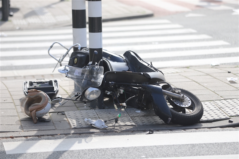 De scooterrijdster kwam in botsing met een auto. Op de kruising zijn lange remsporen te zien van de auto. Een traumateam kwam met spoed ter plaatse. Het slachtoffer is met spoed vervoerd naar het ziekenhuis.