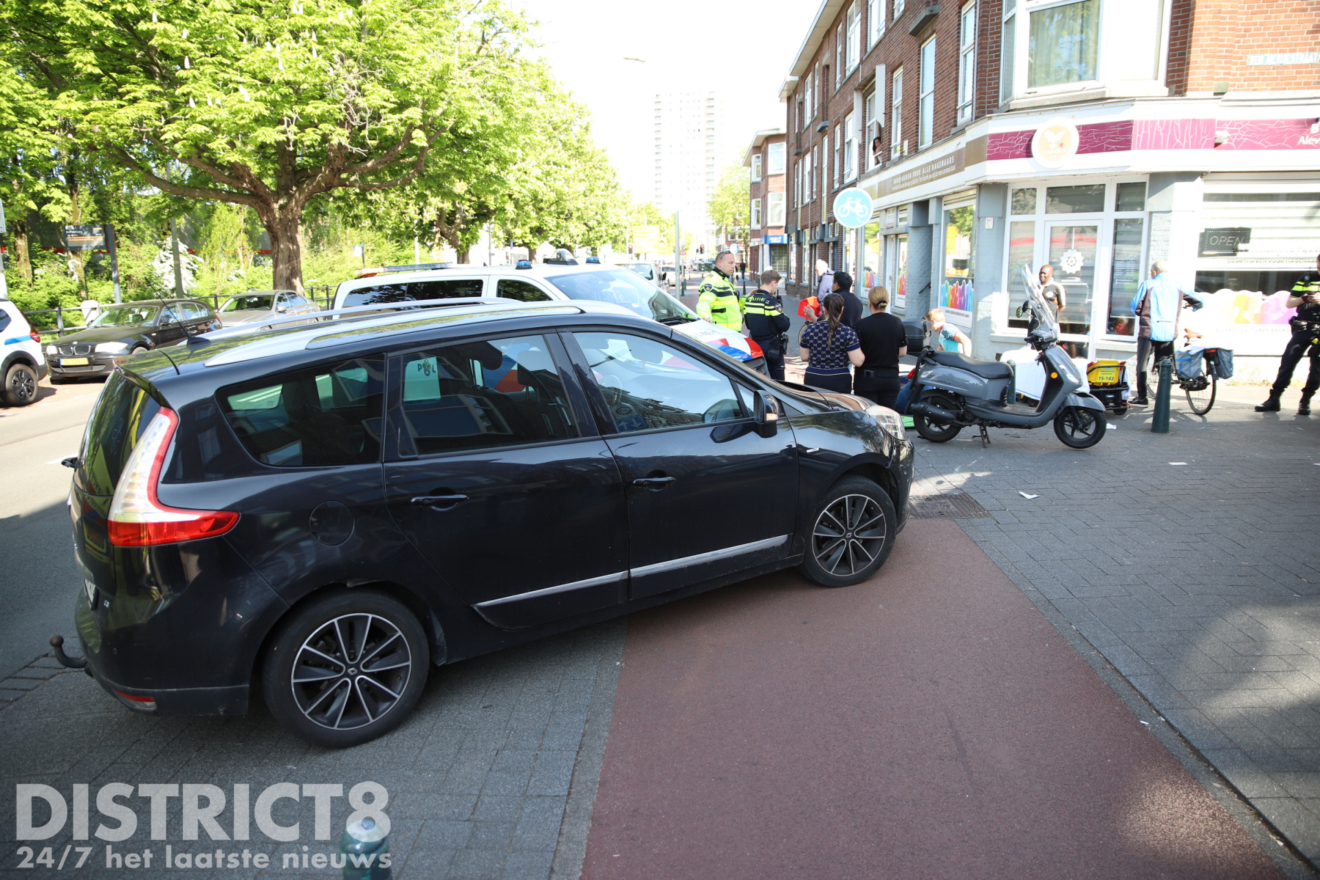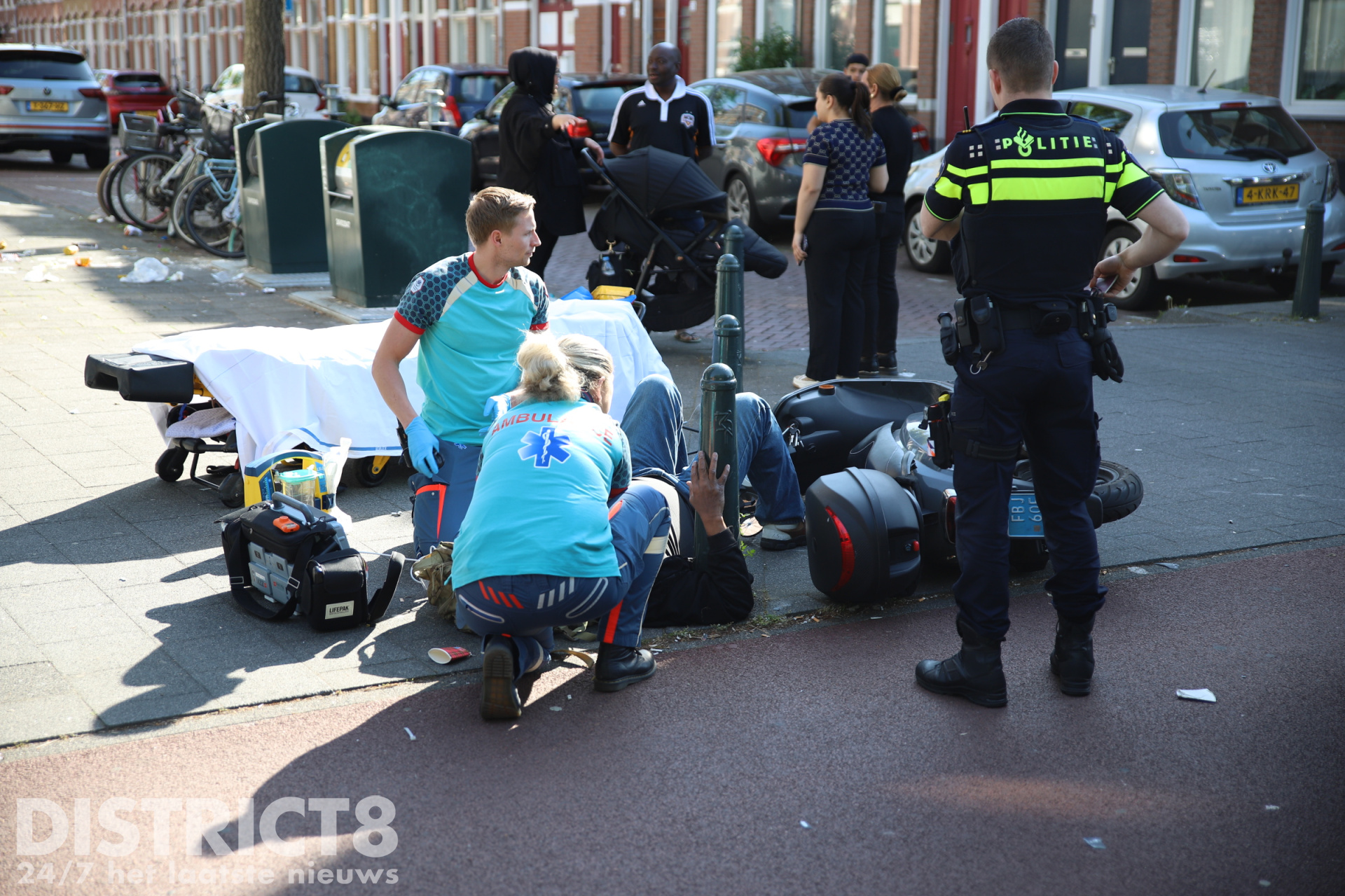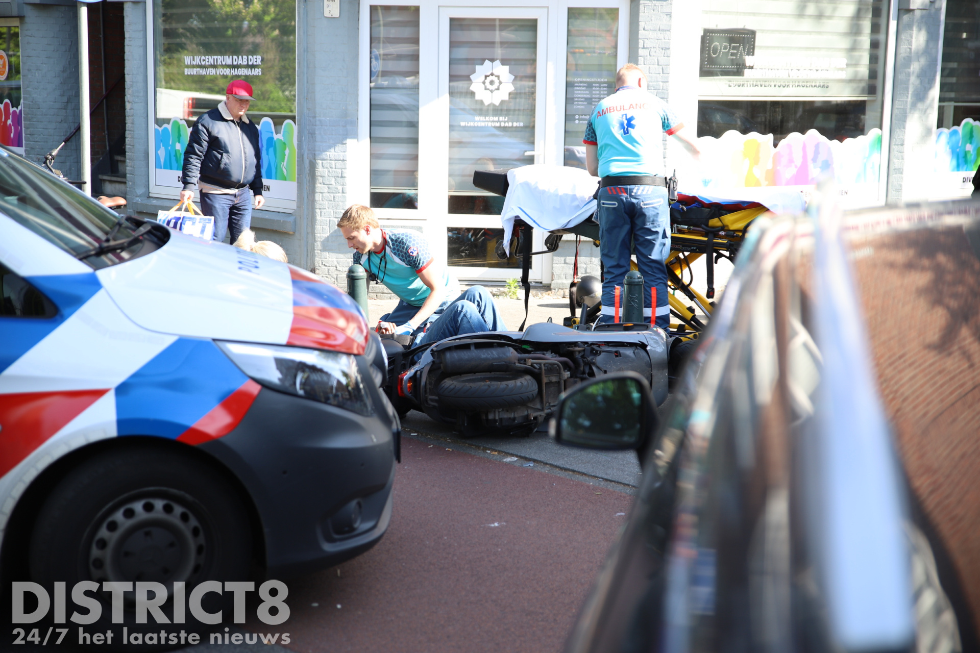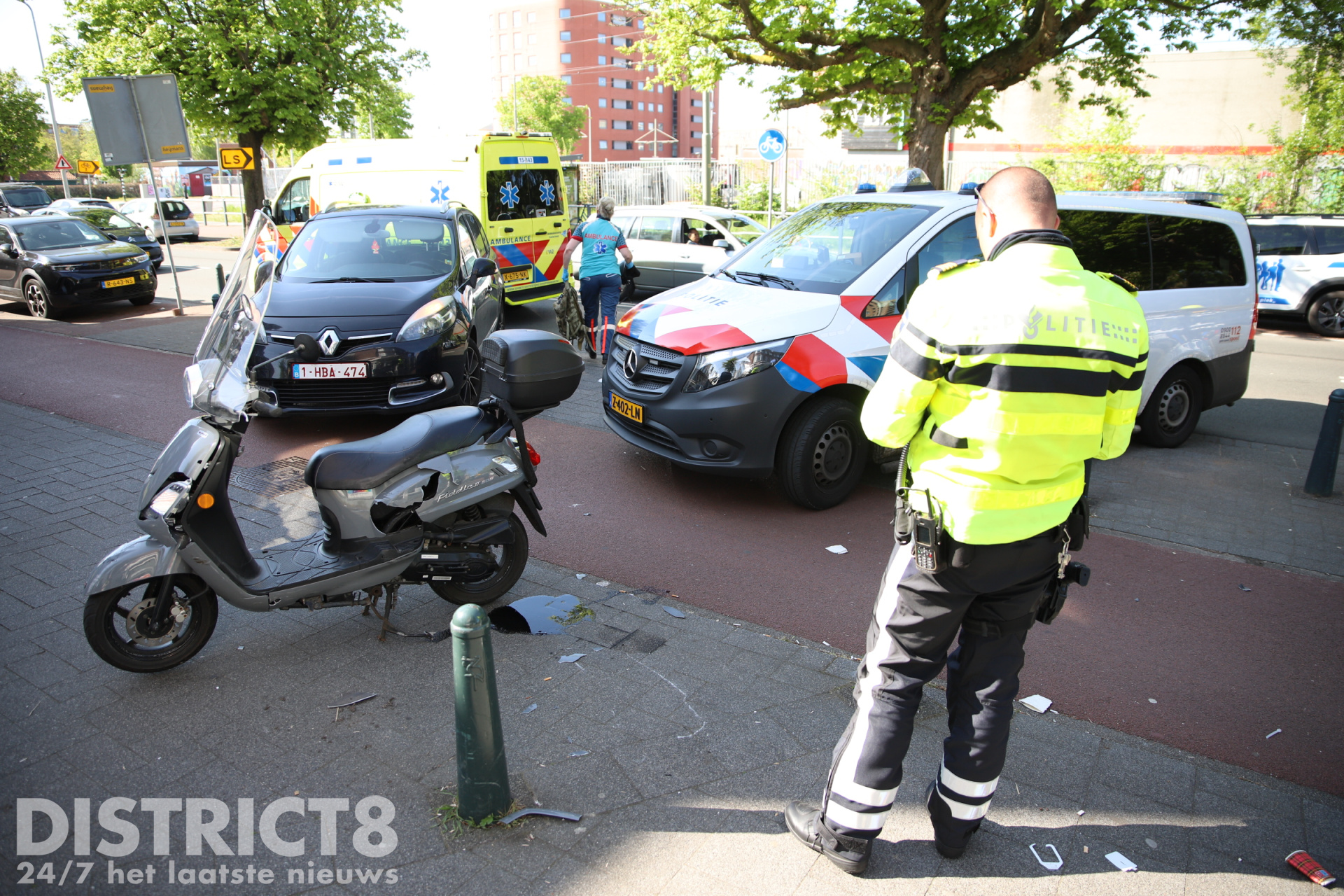 Door de klap werd de scooterrijder gelanceerd en kwam tot stilstand tegen de zogeheten hagenaartjes, de karakteristieke paaltjes langs het fietspad. De bestuurder van de scooter liep hierbij flink letsel op.