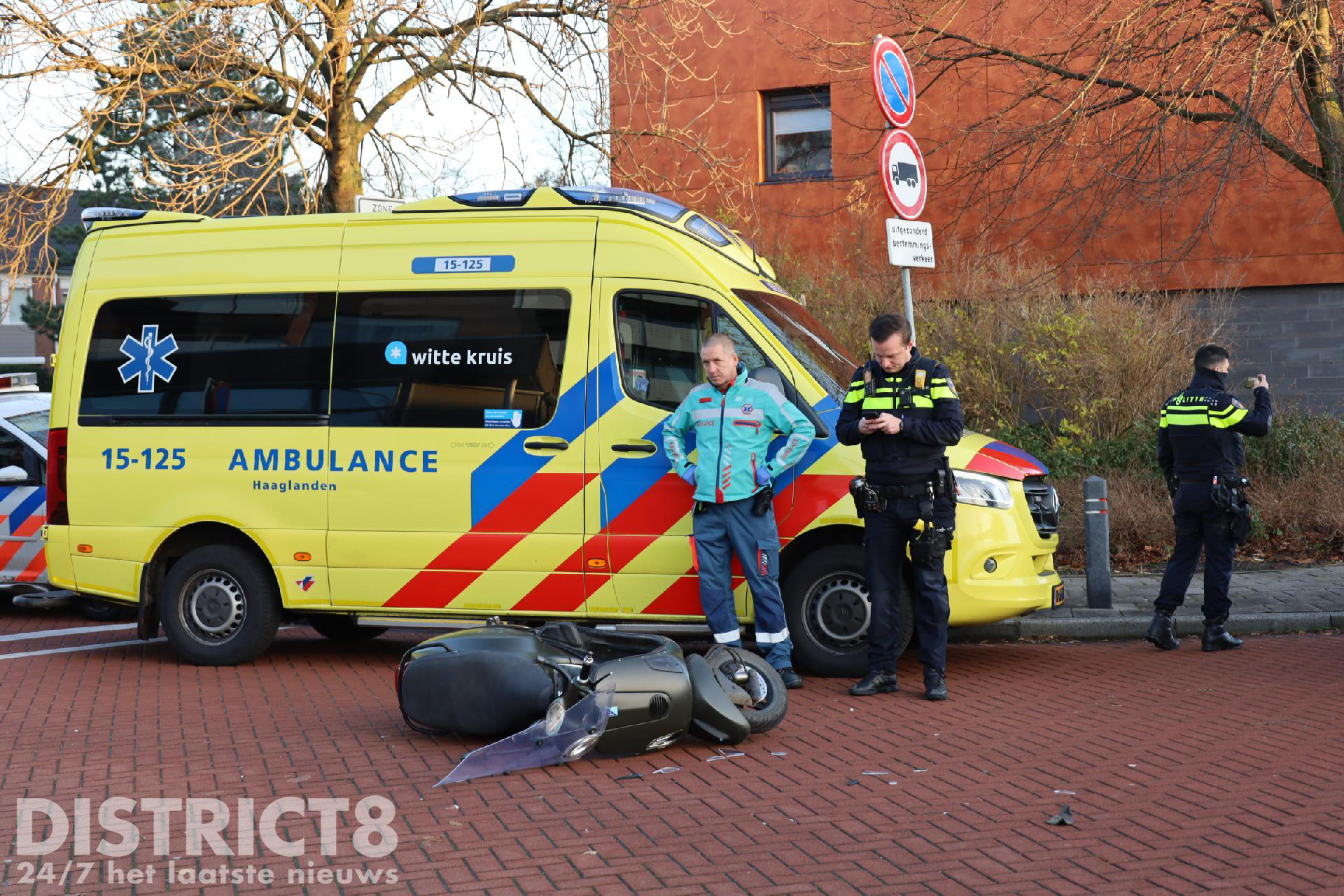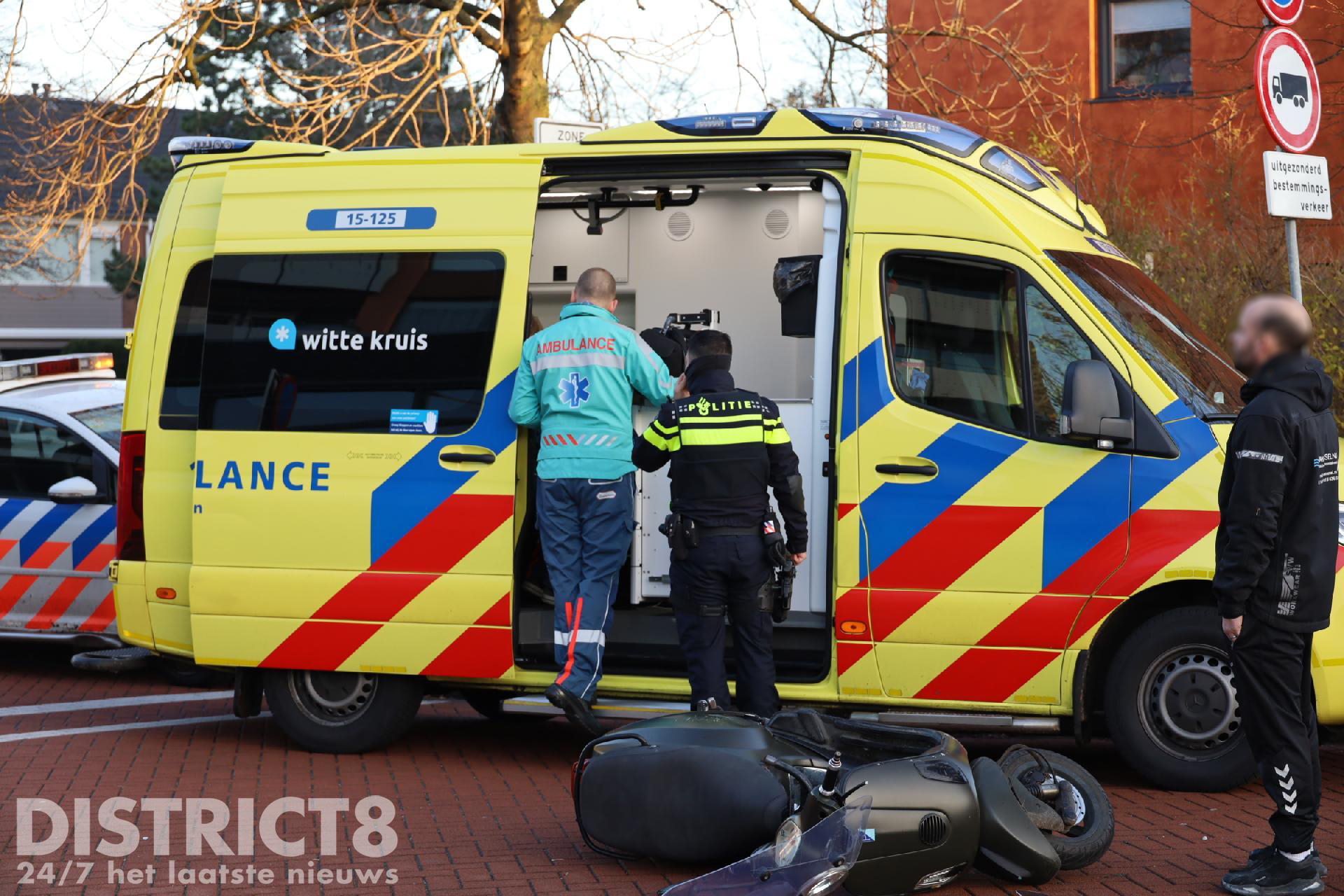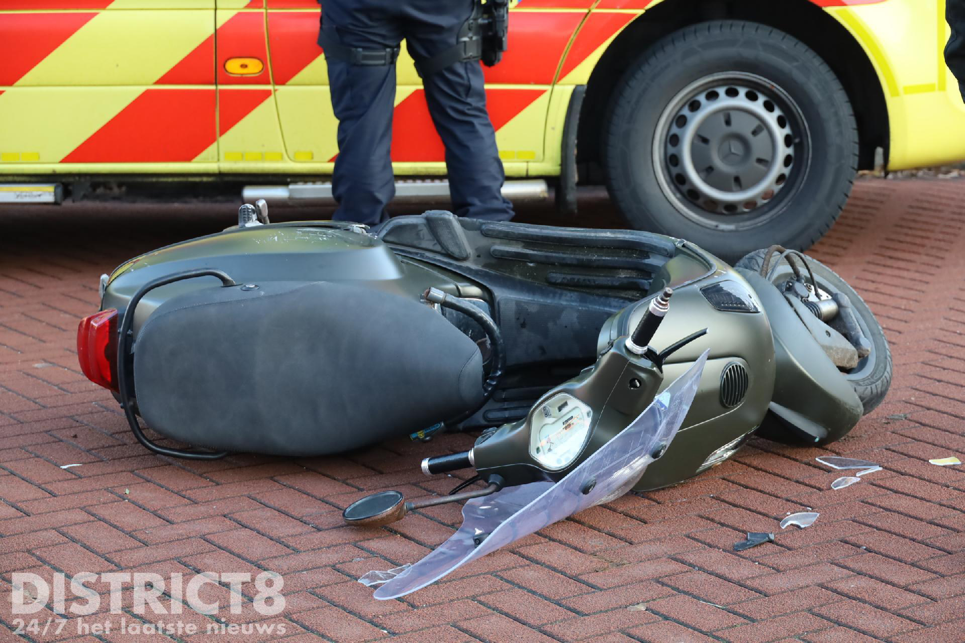 De scooterrijder is onderzocht in de ambulance. Hij hoefde niet mee naar het ziekenhuis.