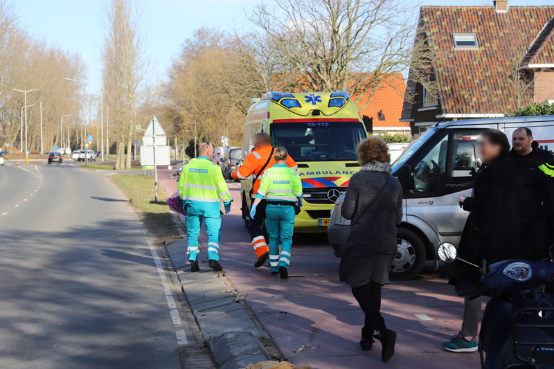 De ambulancedienst en de politie kwamen met spoed ter plaatse. De man is met ondersteuning van het ambulancepersoneel de ambulance ingegaan. De schade aan het busje en de scooter zijn flink. De verkeerspolitie is kort ter plaatse geweest.