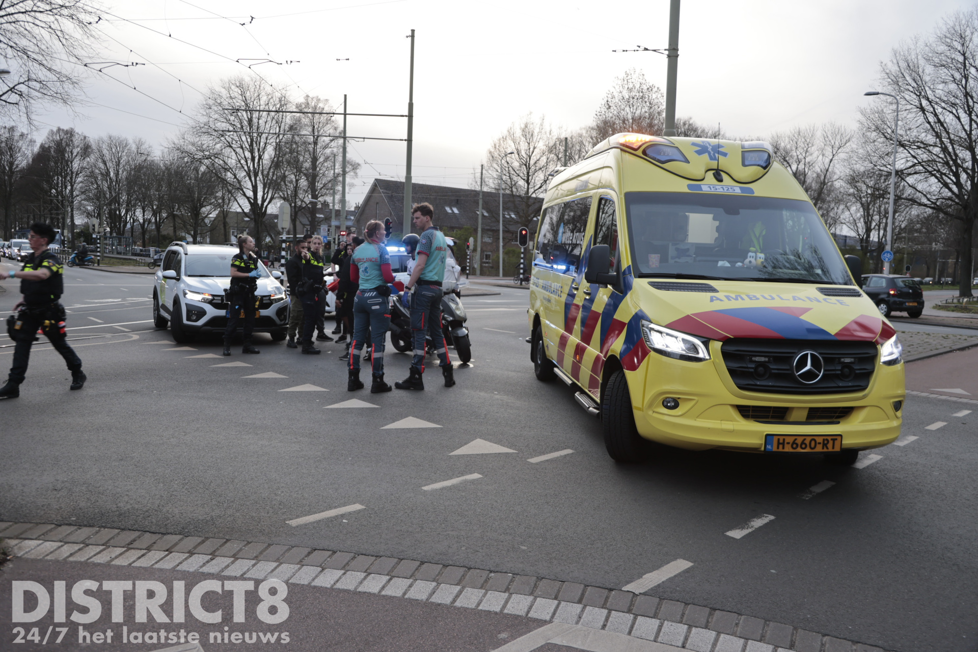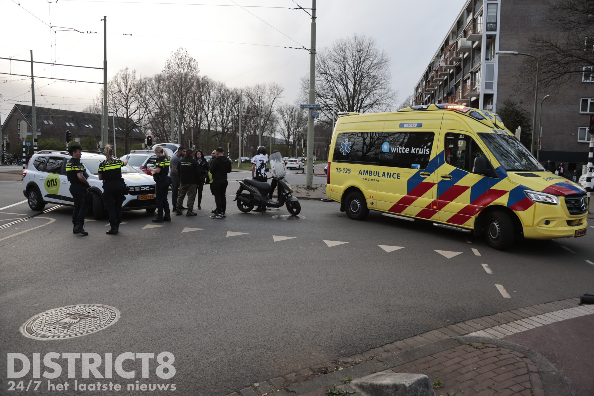 De scooterrijder raakte daarbij gewond en wordt momenteel behandeld in een ambulance. Over de ernst van het letsel is nog niets bekend.