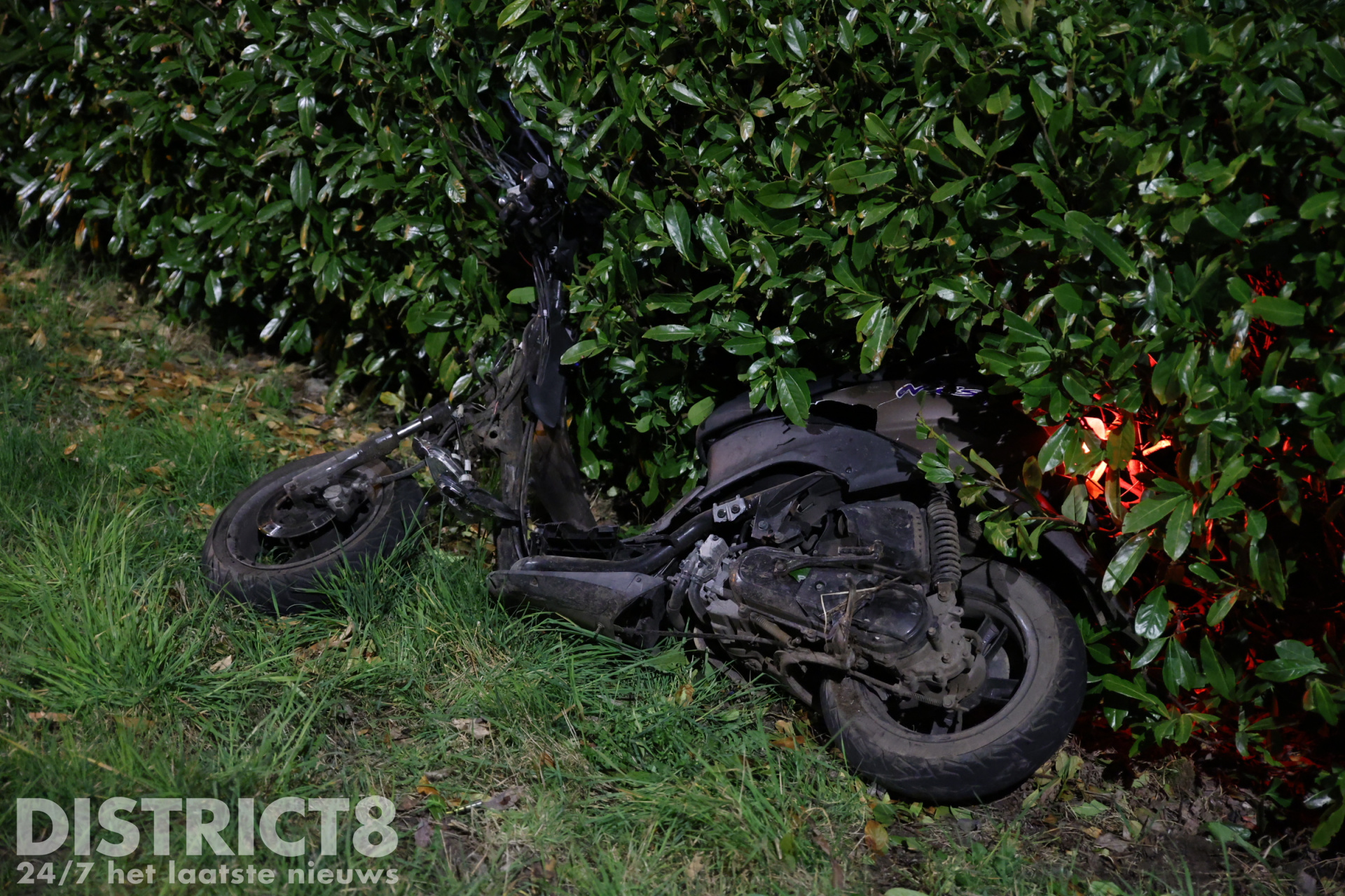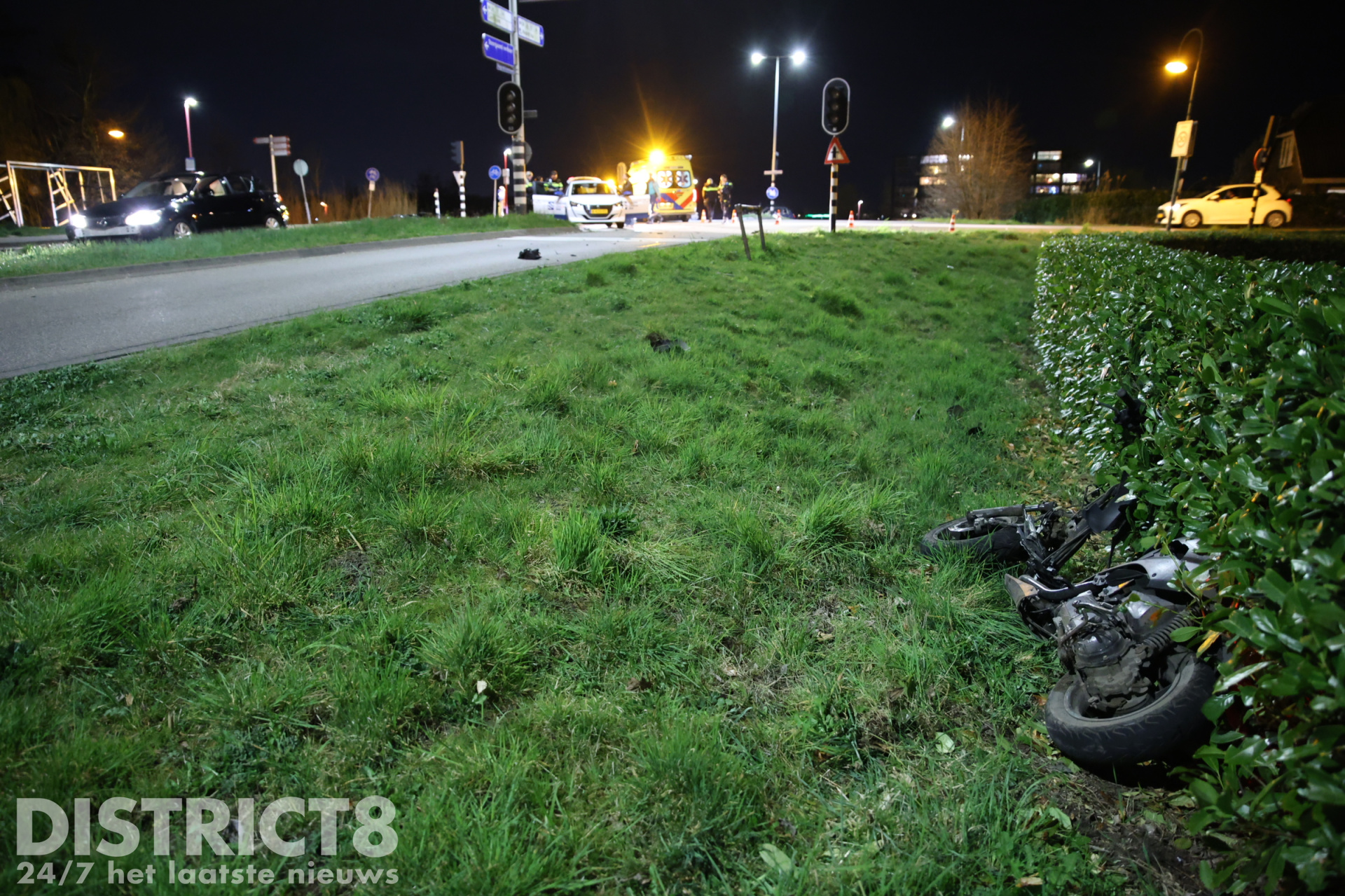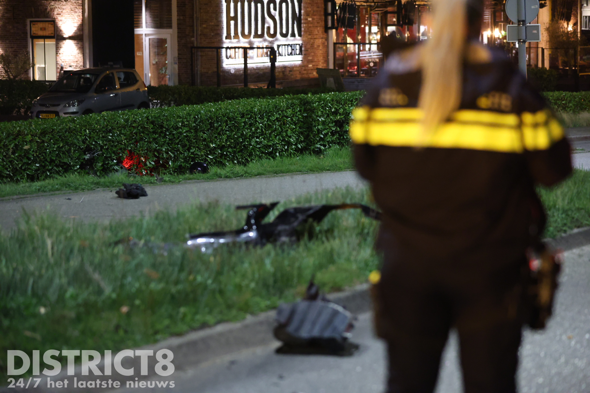 De scooter kwam pas tientallen meters verderop in de berm tot stilstand. De weg is volledig afgesloten voor verkeer.
