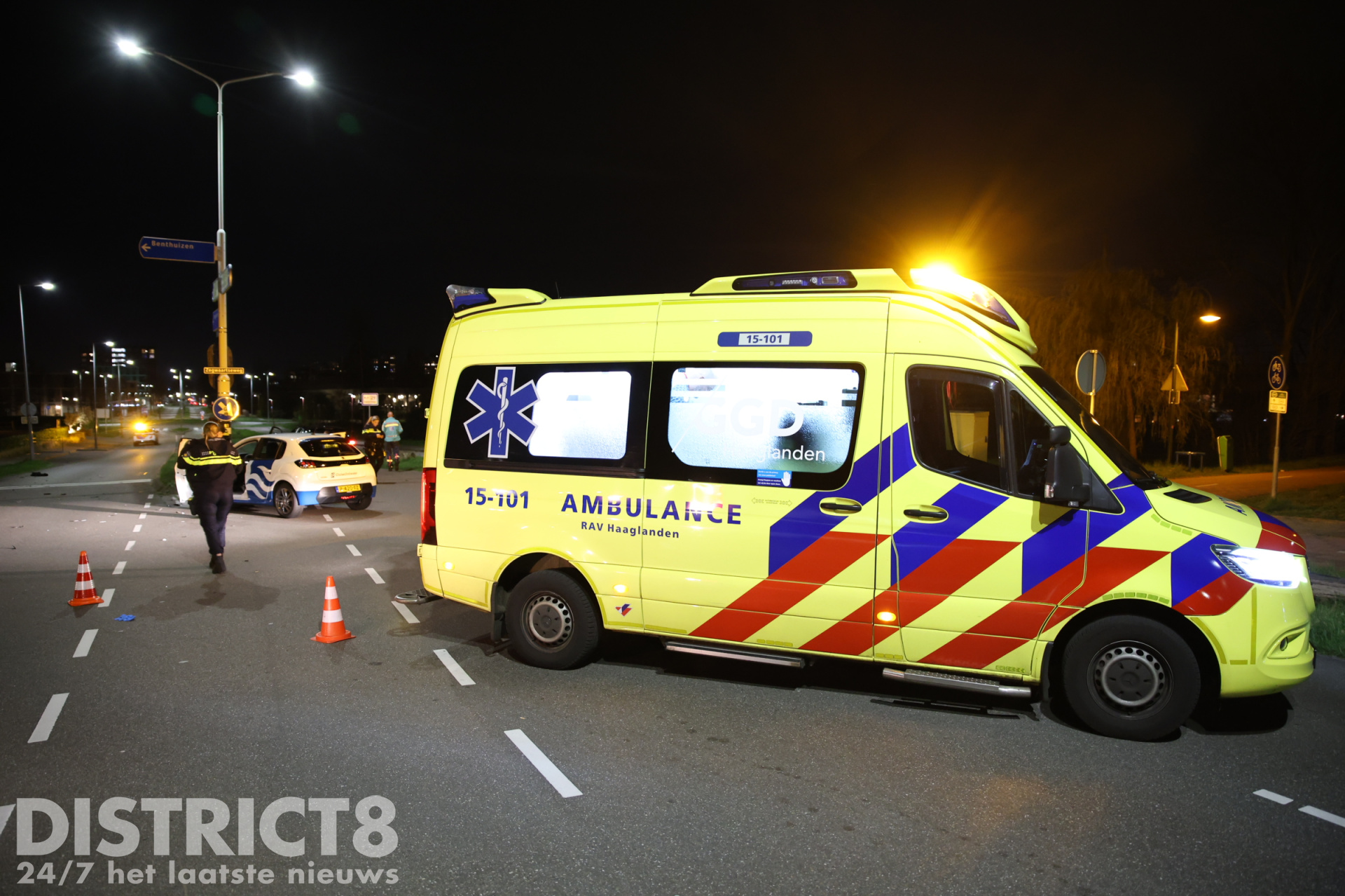 Zoetermeer – Zaterdagavond 29 maart rond 22:25 uur heeft er een flinke aanrijding plaatsgevonden tussen een auto en een scooter op de kruising van de Hugo de Grootlaan met de Zegwaartseweg.