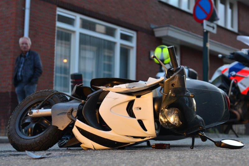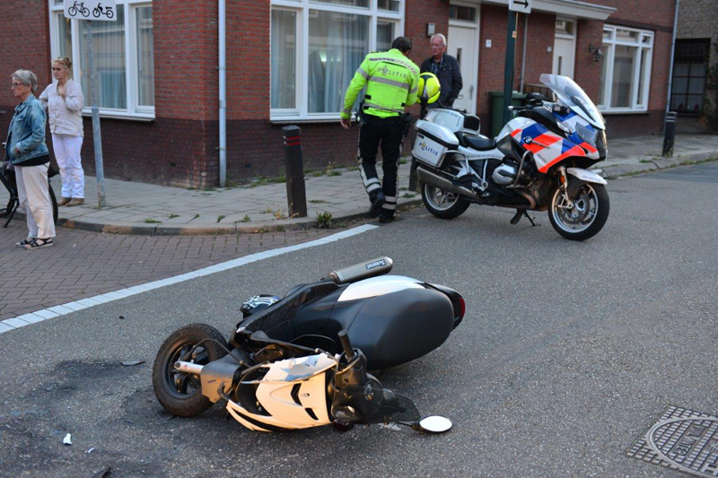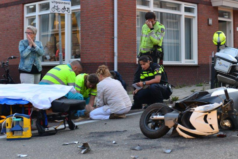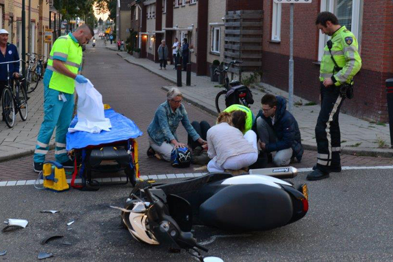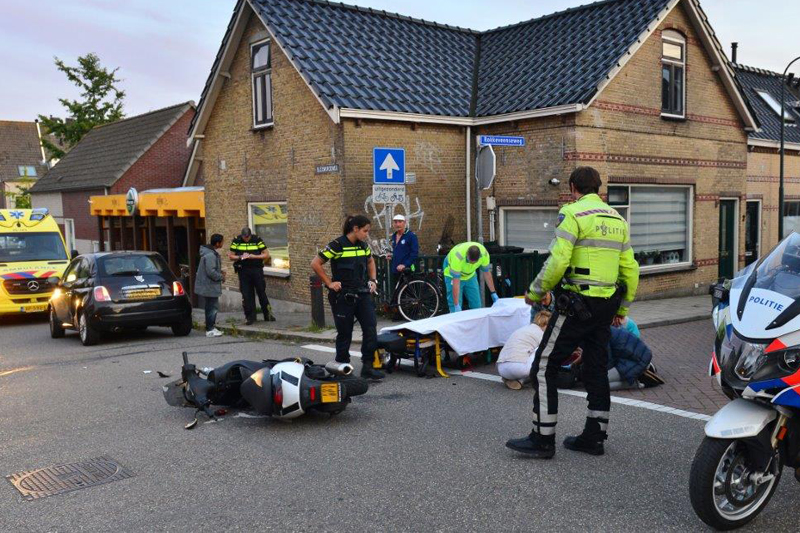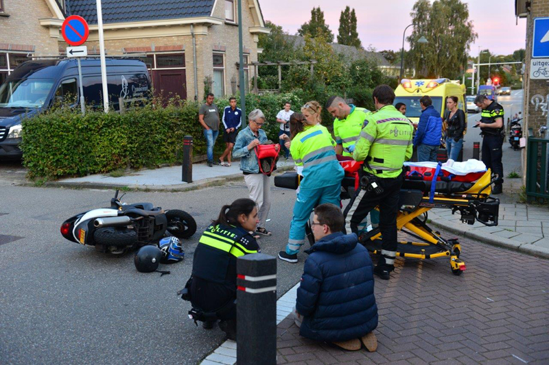Na onderzoek door het ambulancepersoneel is de gewonde scooterrijder overgebracht naar het ziekenhuis.