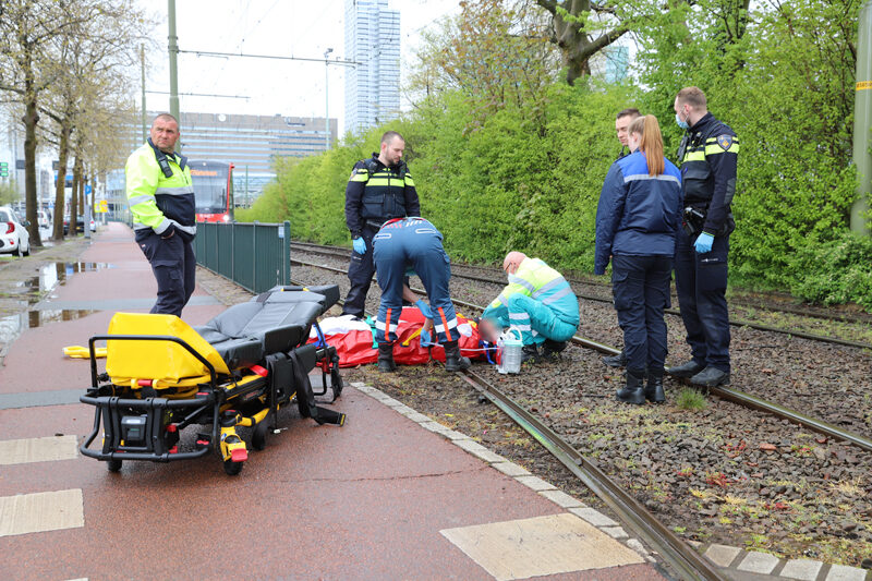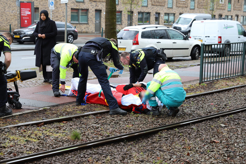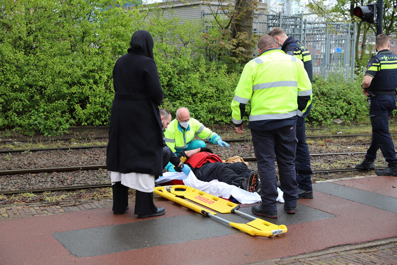 De scooterrijder reed achter een fietser op de Lekstraat, ter hoogte van de tramrails ging de fietser onderuit door de gladde tramrails. De scooterrijder die achter de fietser reed zag dit te laat en klapte op de fiets.