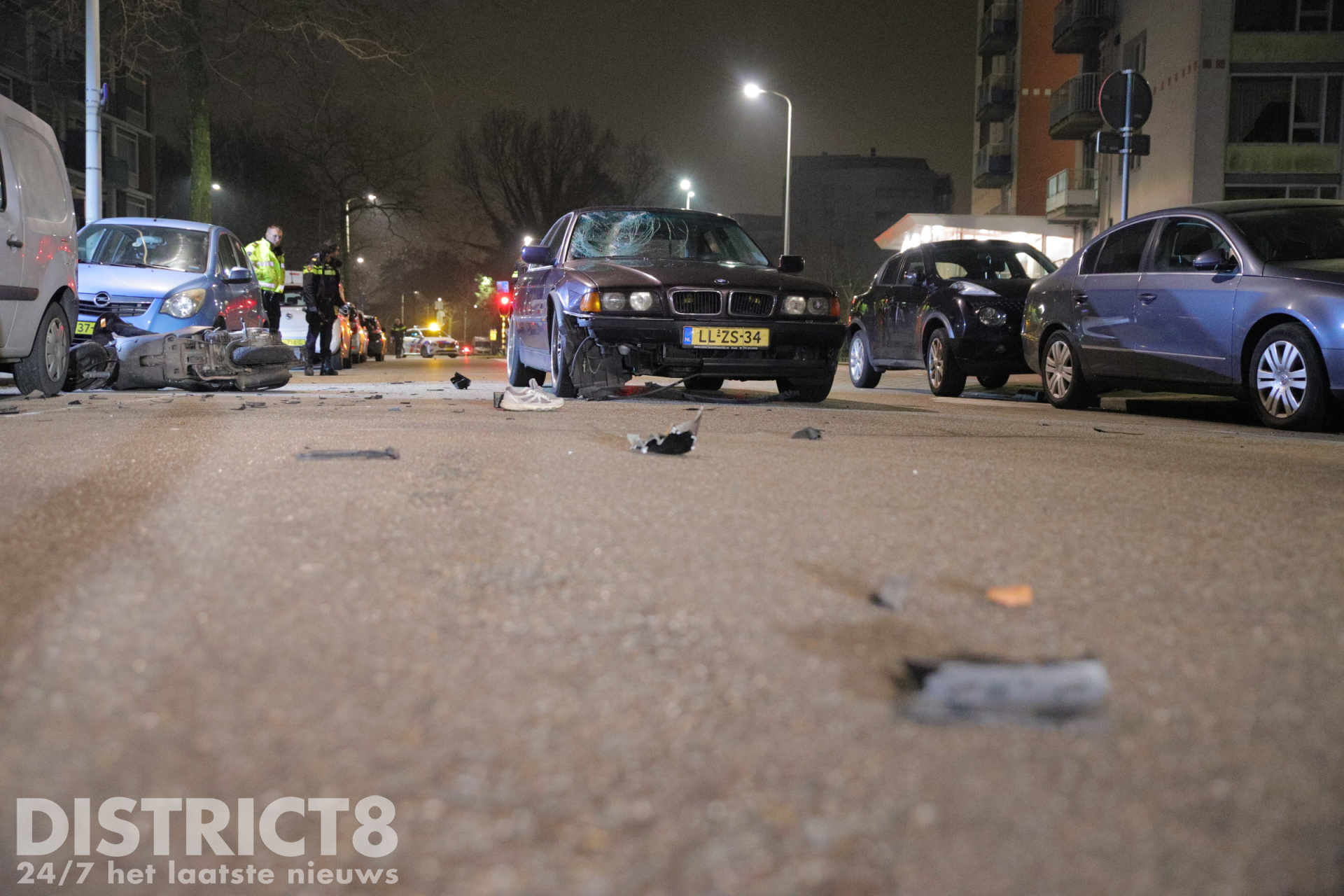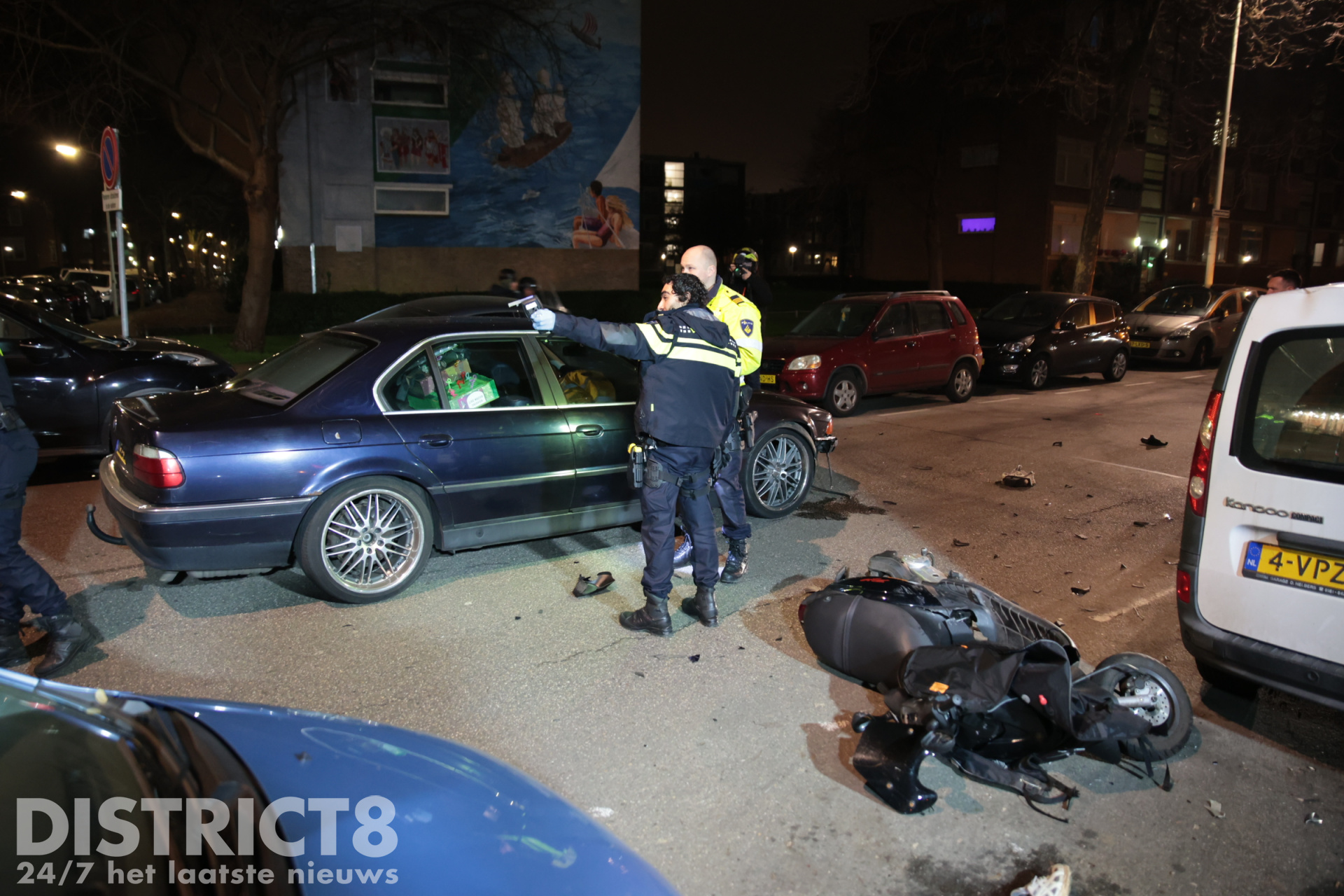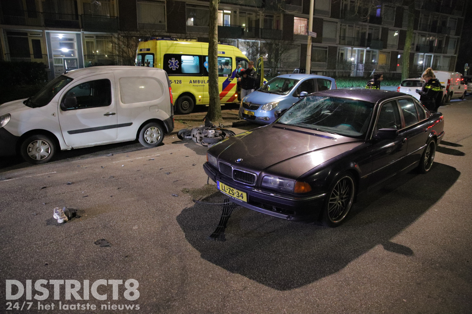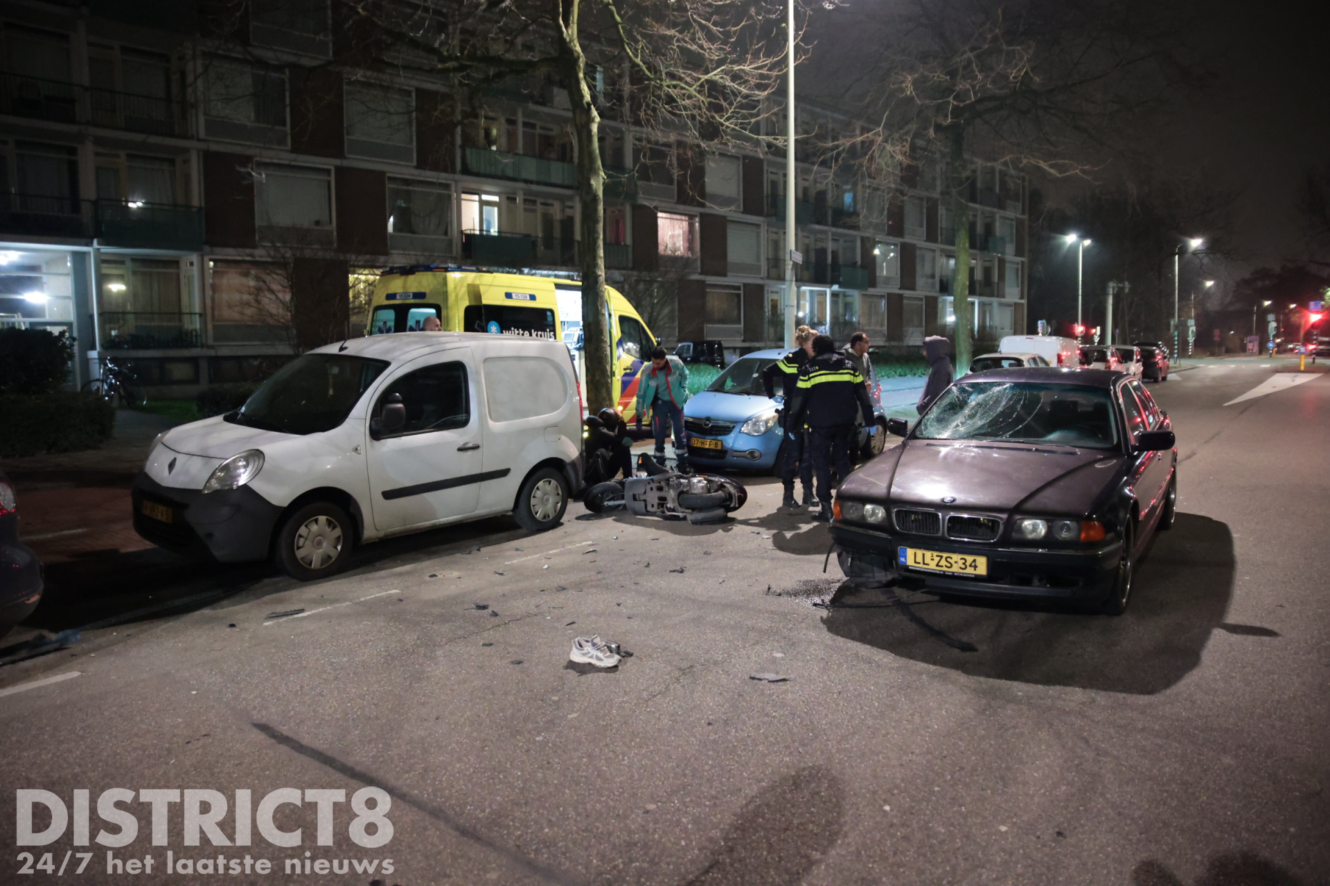 De scooter werd door een auto aangereden, waarna de scooterrijder ten val kwam. Door de impact liep de bestuurder lichte verwondingen op.
