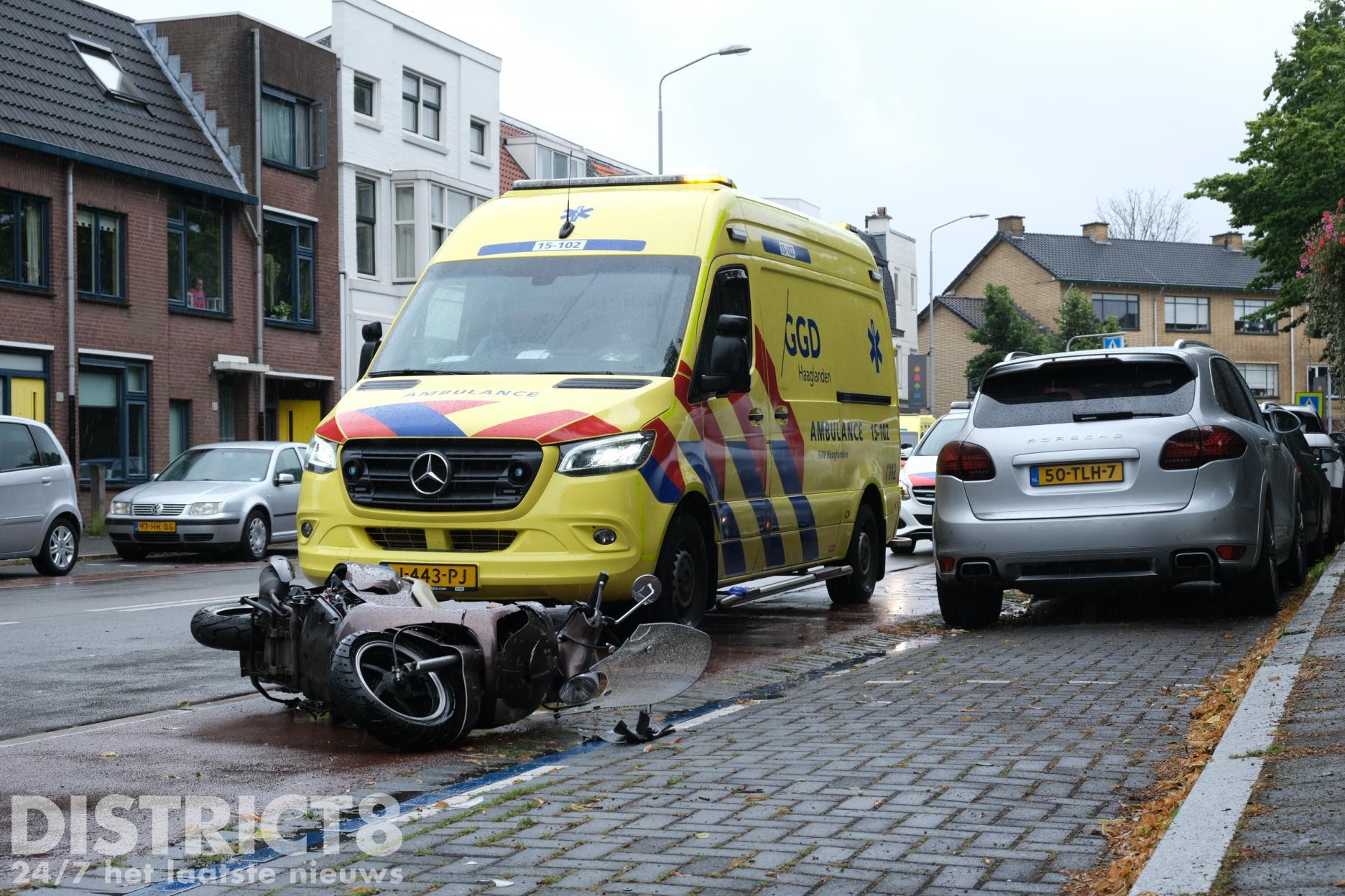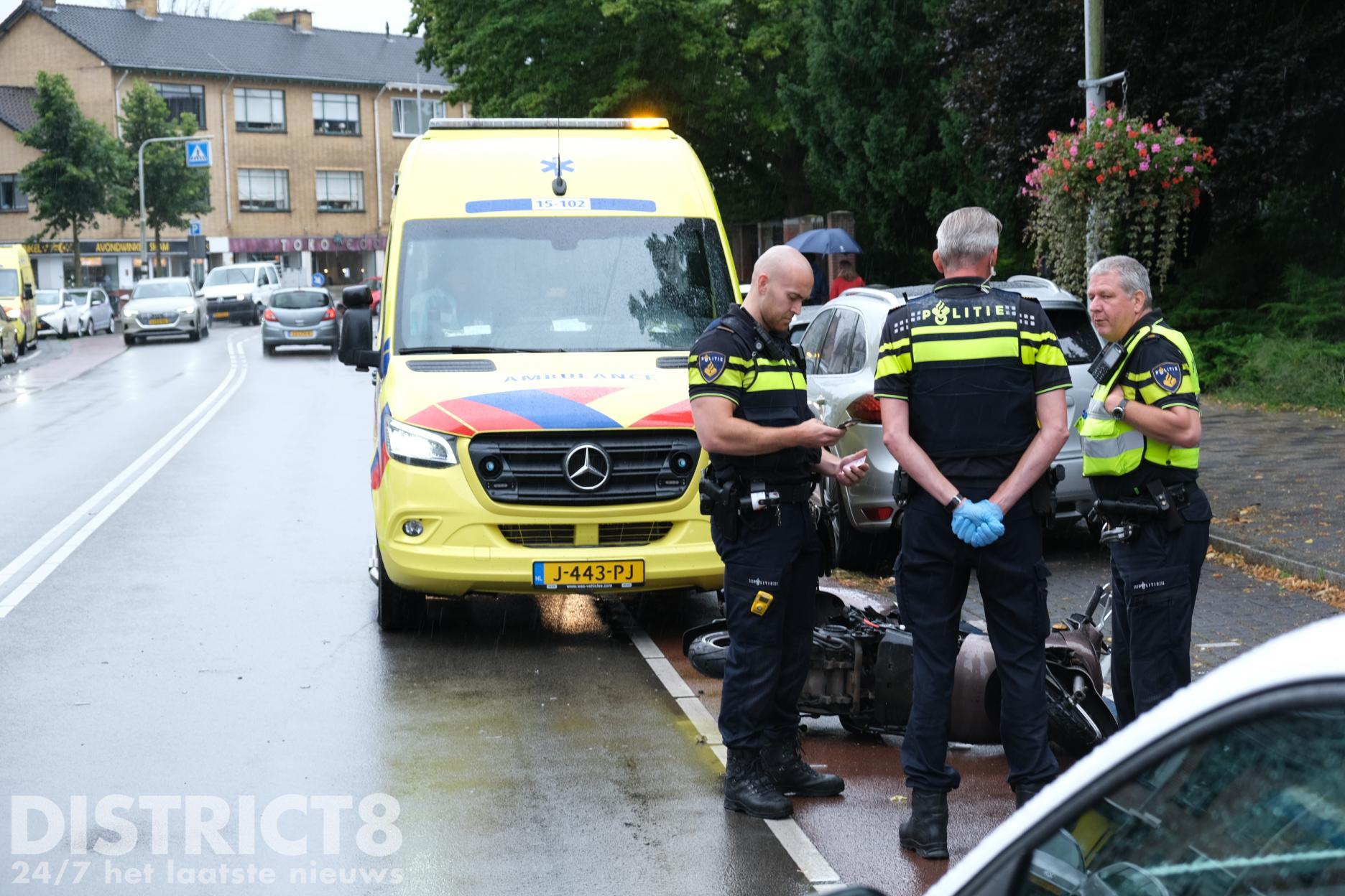 De scooterrijder raakte gewond bij het ongeval en is voor verdere controle met de ambulance naar het ziekenhuis overgebracht.