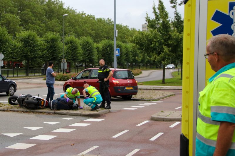 De bestuurder van de scooter raakte hierbij gewond. Een ambulance kwam met spoed ter plaatse voor hem.