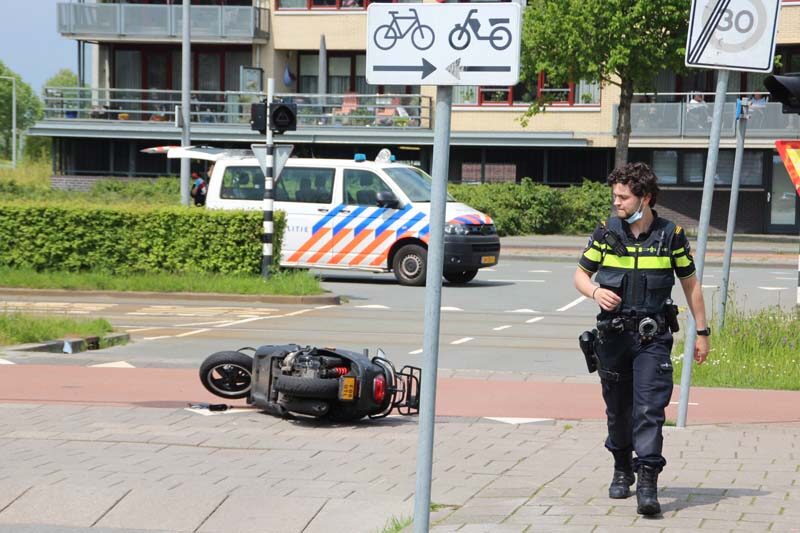 Door een nog onbekende oorzaak kwamen de scooter en de auto met elkaar in botsing. De scooterrijder kwam na de aanrijding hard ten val en raakte gewond.