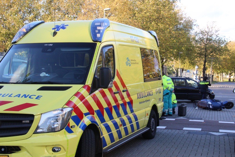 Schiedam – Op de Parkweg, kruispunt met de Burg van Haarenlaan heeft donderdagmiddag een aanrijding plaatsgevonden tussen een scooter en een auto. Een ambulance kwam met spoed ter plaatse.