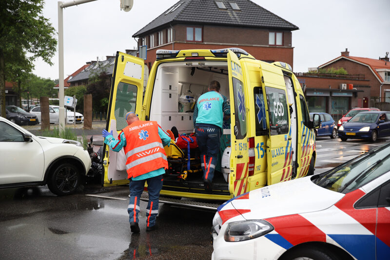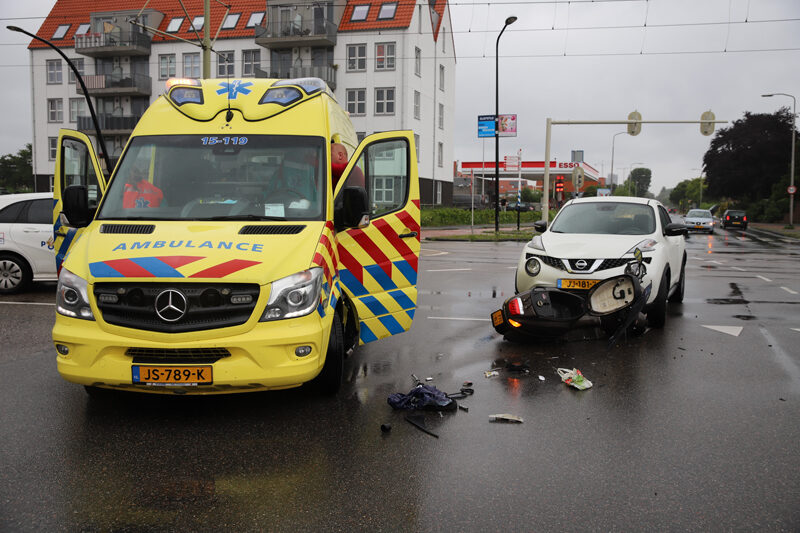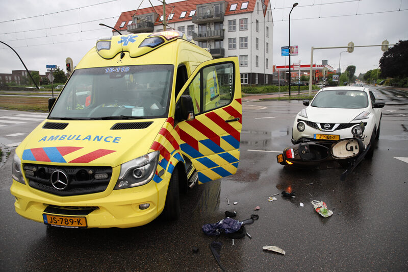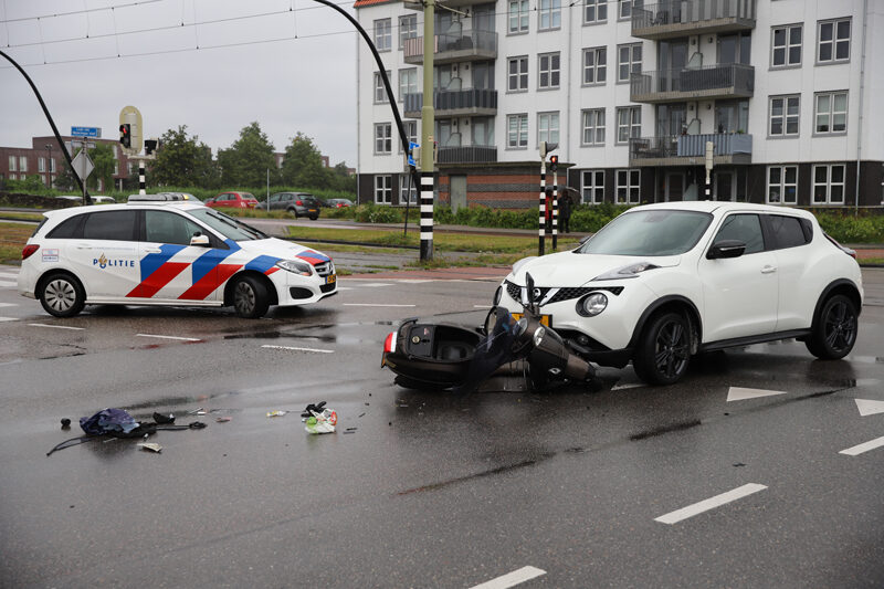 Door nog onbekende reden kwam de scooterrijder in botsing met de personenauto op de kruising. Na de aanrijding kwam de scooterrijder hard ten val, hierbij raakte hij gewond.