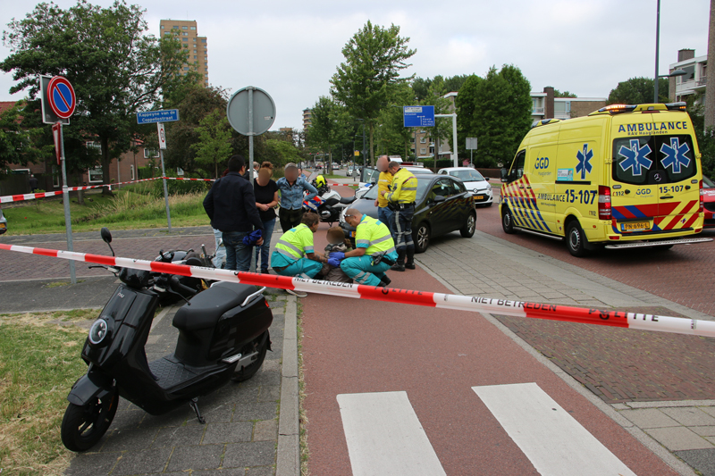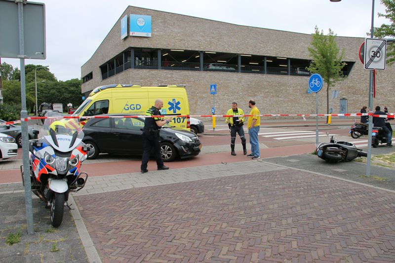 Delft – Aan de Ruys de Beerenbrouckstraat in Delft heeft vrijdagochtend een aanrijding plaatsgevonden tussen een auto en een scooterrijder.