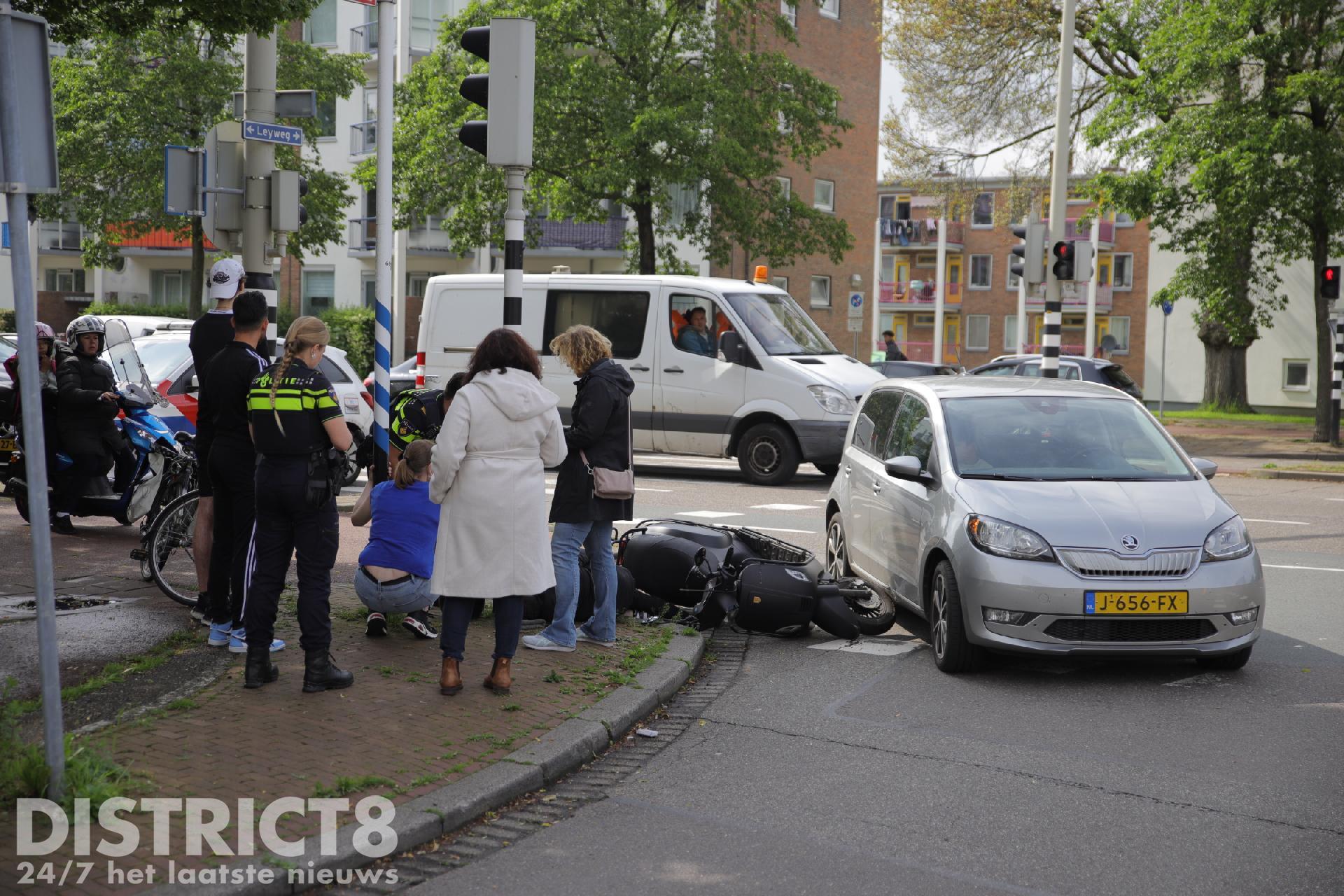 Den Haag – Een scooterrijder is donderdagmiddag gewond geraakt na een aanrijding met een afslaande automobilist. Dit gebeurde op de Erasmusweg ter hoogte van de Leyweg.