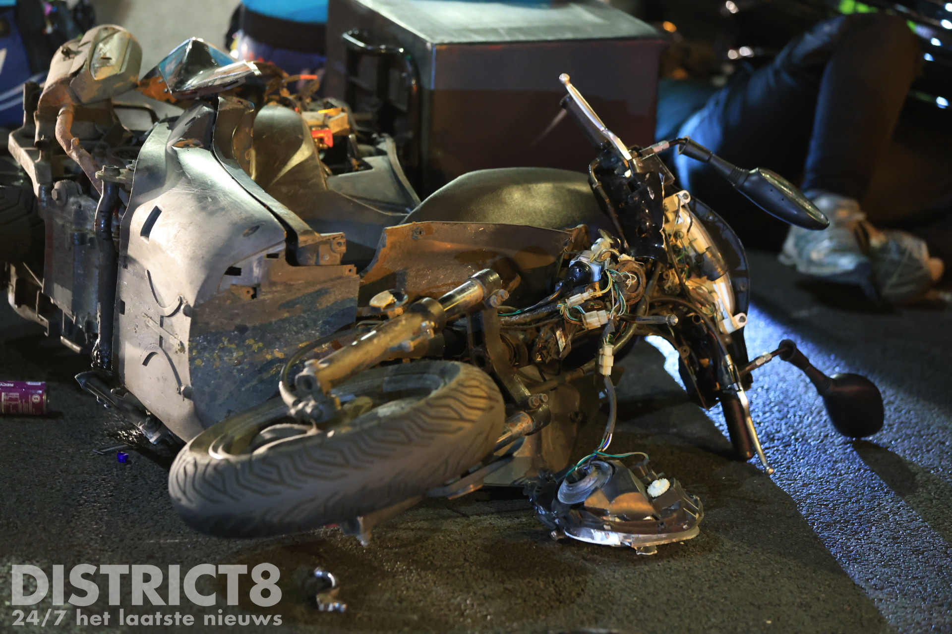 Ambulancepersoneel heeft de scooterrijder op straat gestabiliseerd en in een vacuümmatras gelegd, na controle in de ambulance is het slachtoffer met spoed (A1) vervoerd naar het ziekenhuis.