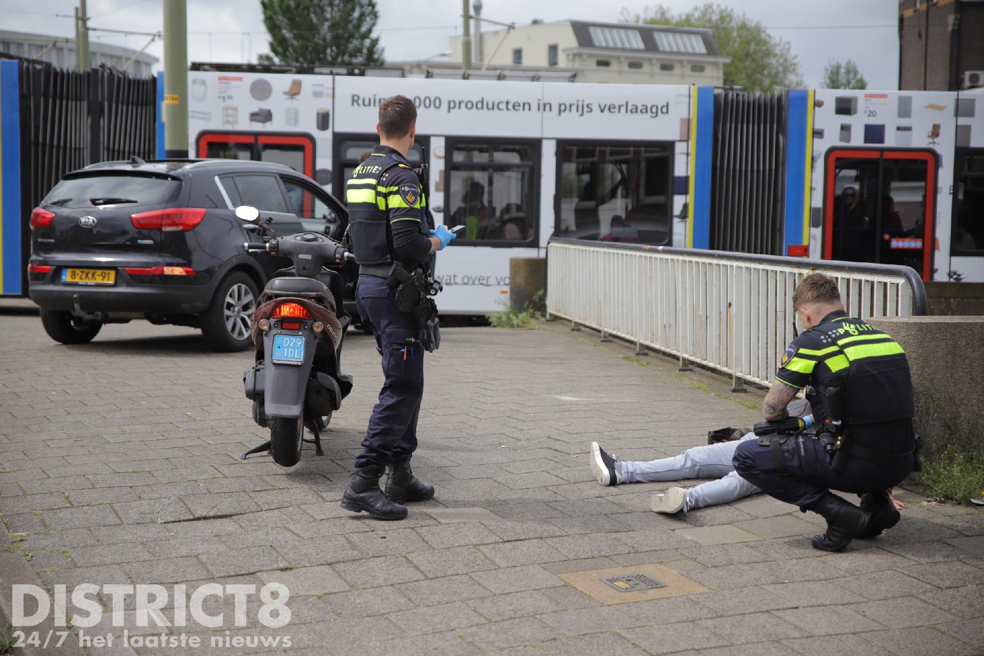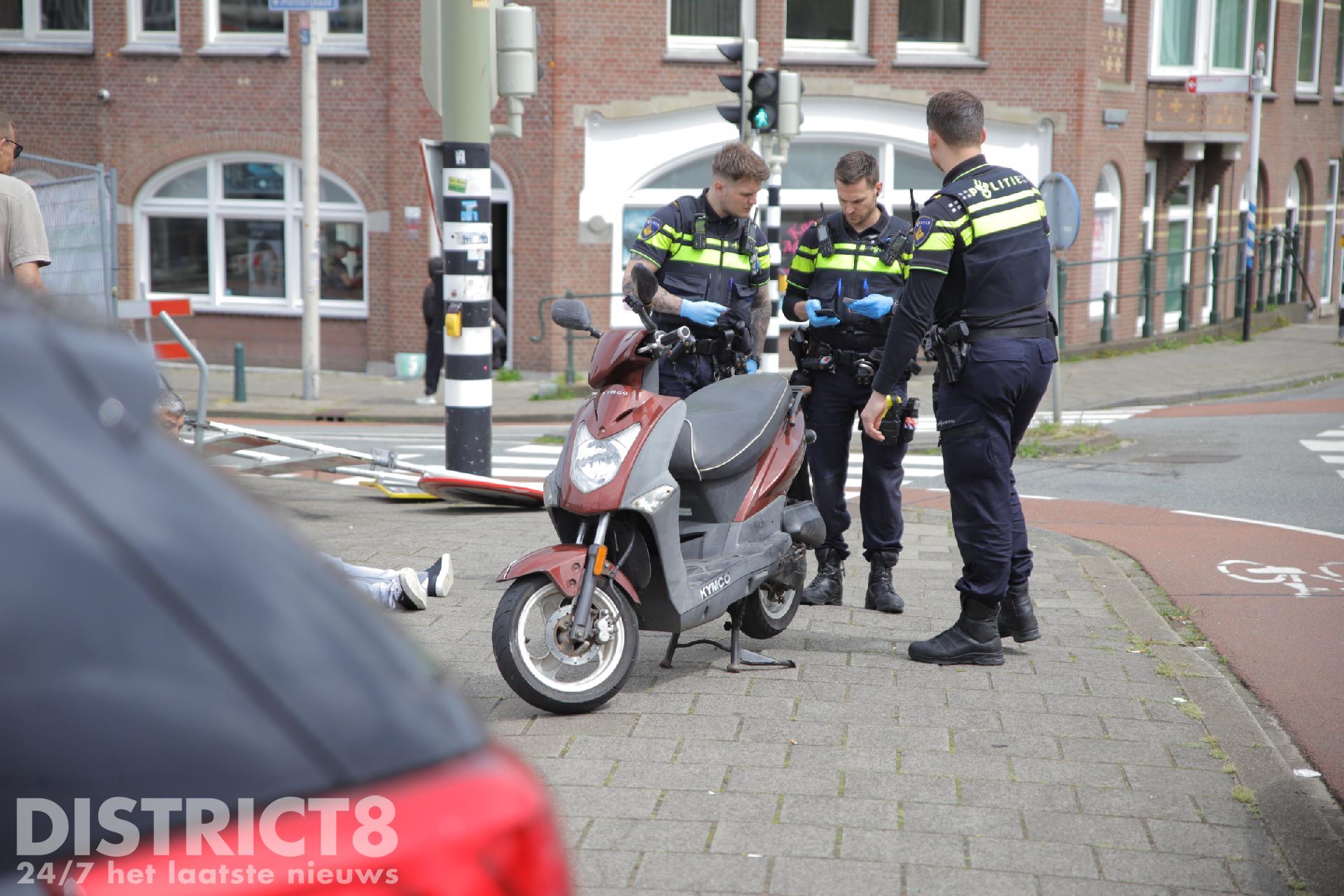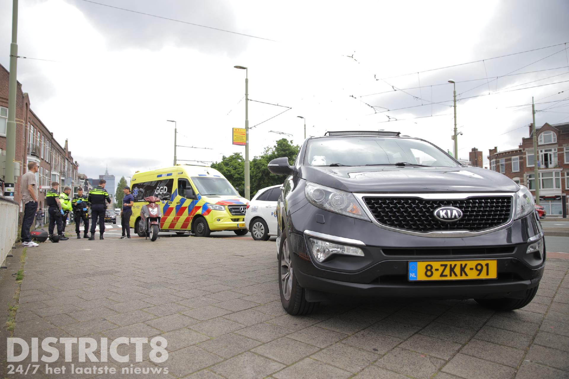 De scooterrijder raakte gewond en moest behandeld worden in een ter plaatse gekomen ambulance.