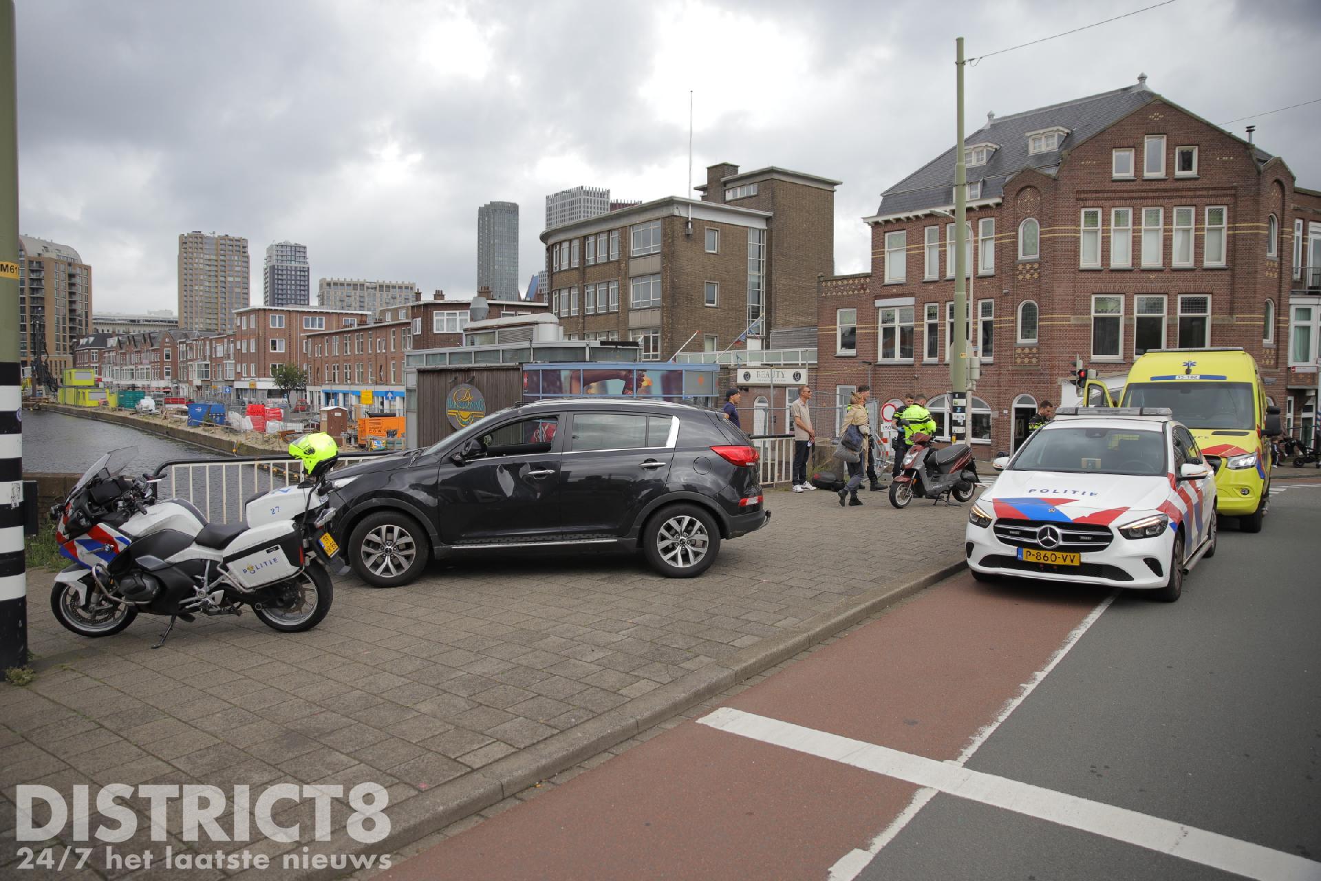 Een scooterrijder kwam daar in botsing met een automobilist. Hoe het ongeval heeft kunnen gebeuren is niet bekend. De scooterrijder kwam met een hard klap tegen de bestuurdersdeur aan en kwam vervelend ten val.