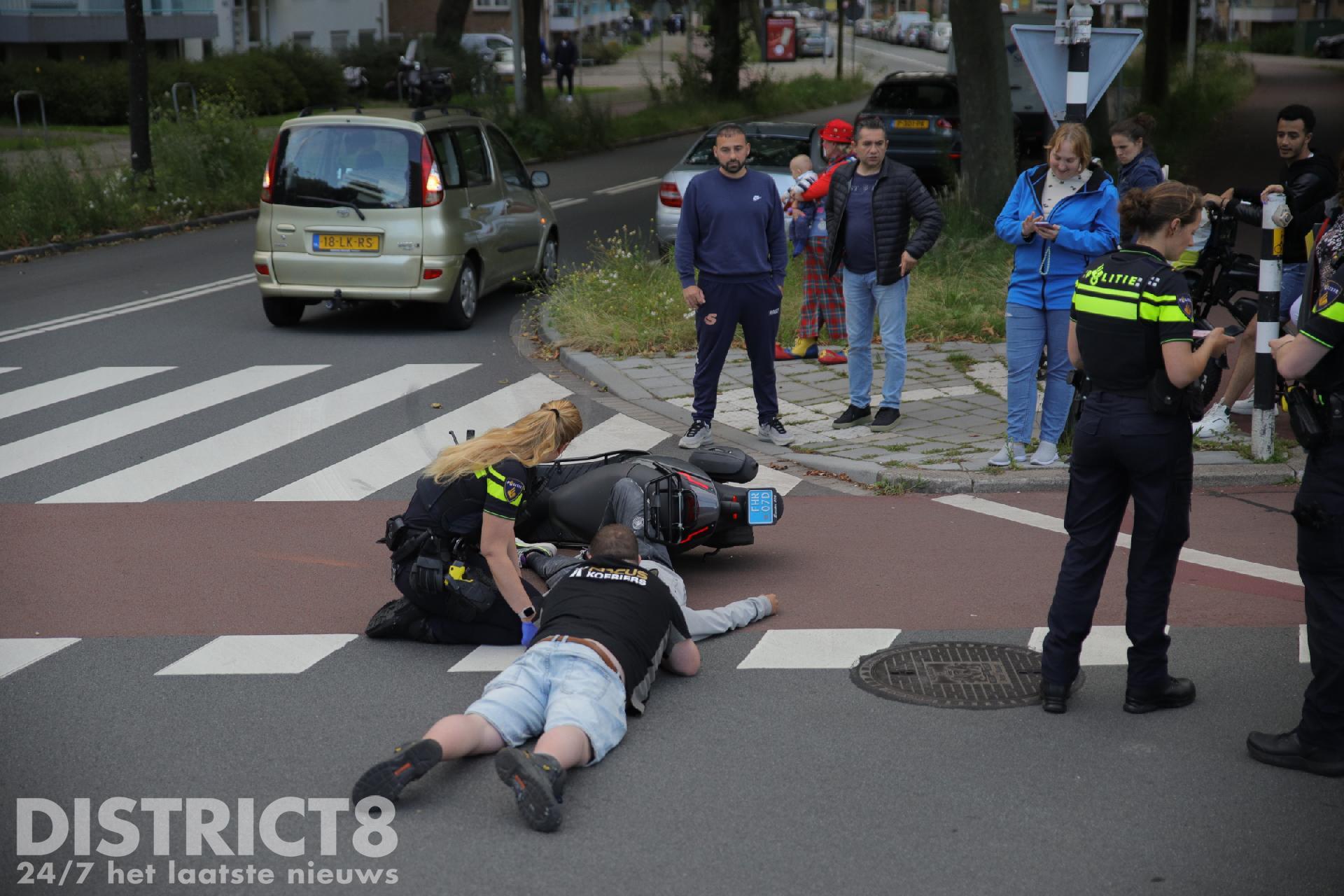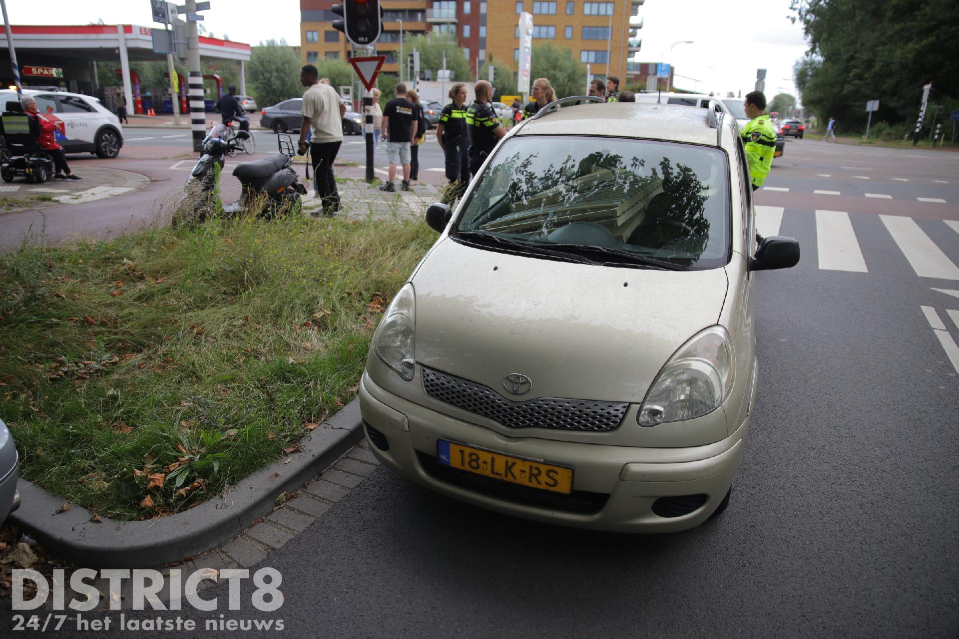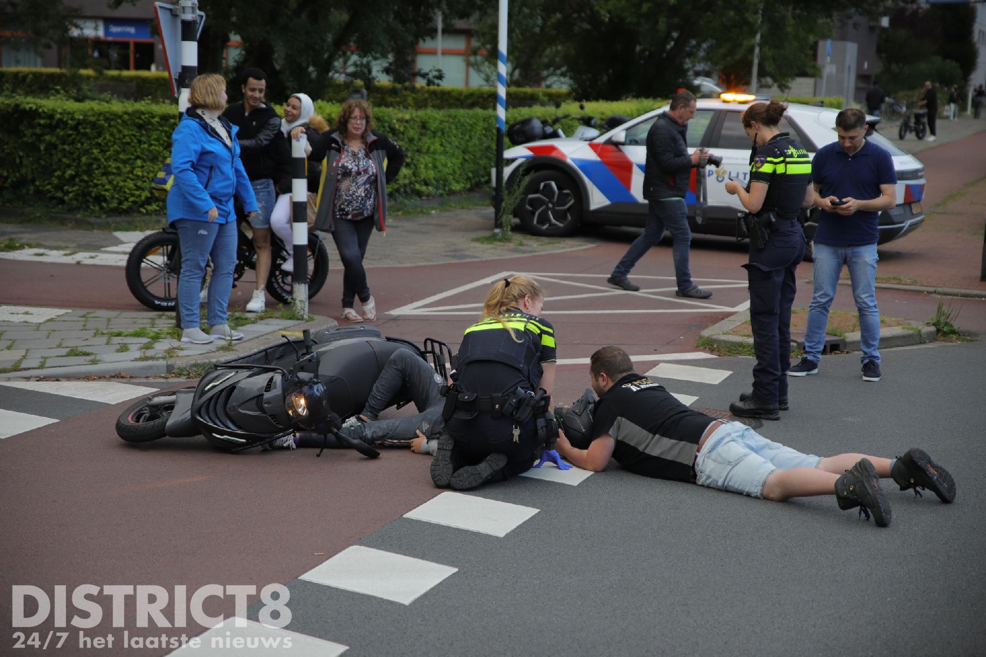 Den Haag – Op de Erasmusweg in Den Haag is een scooterrijder aangereden door een afslaande automobilist.