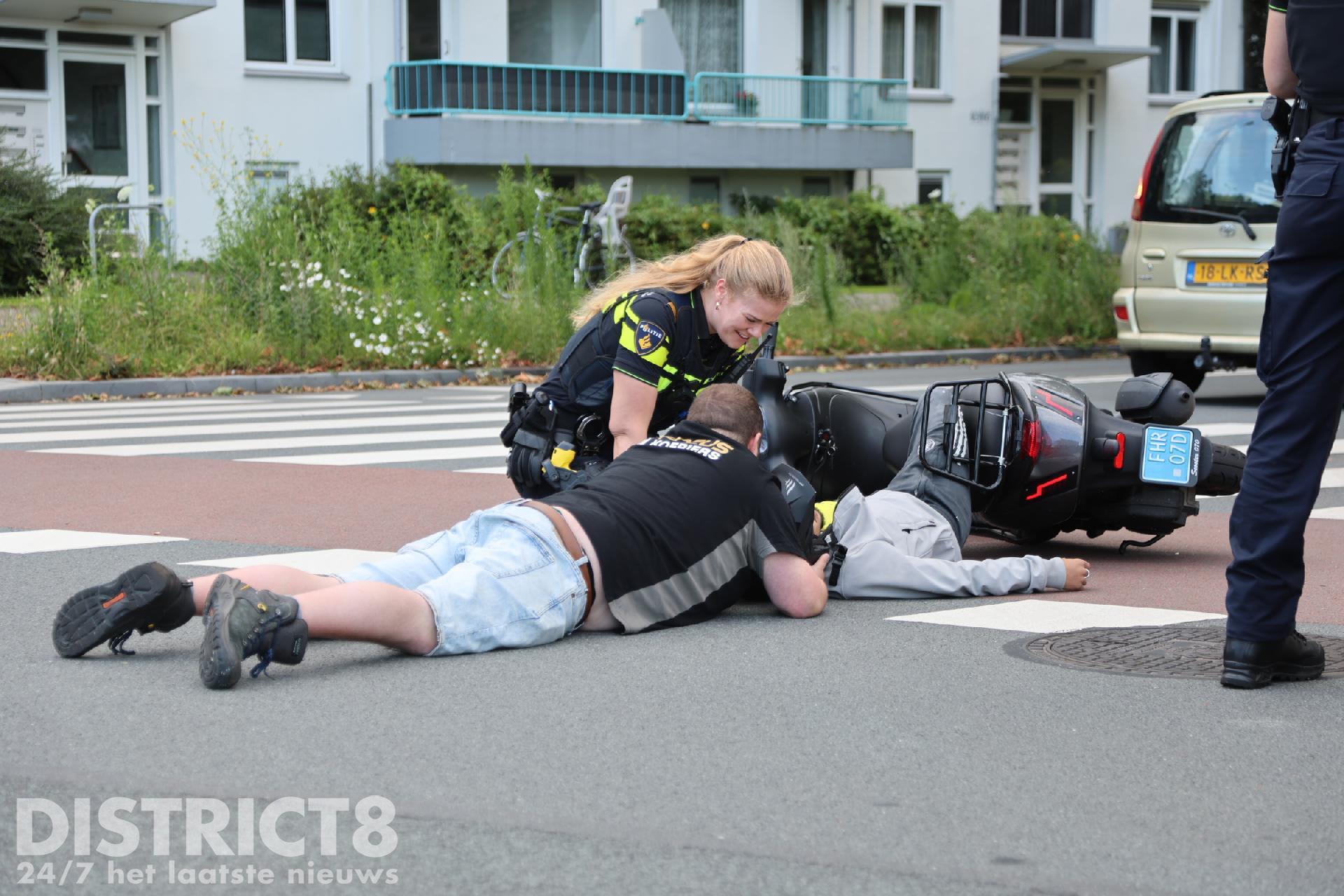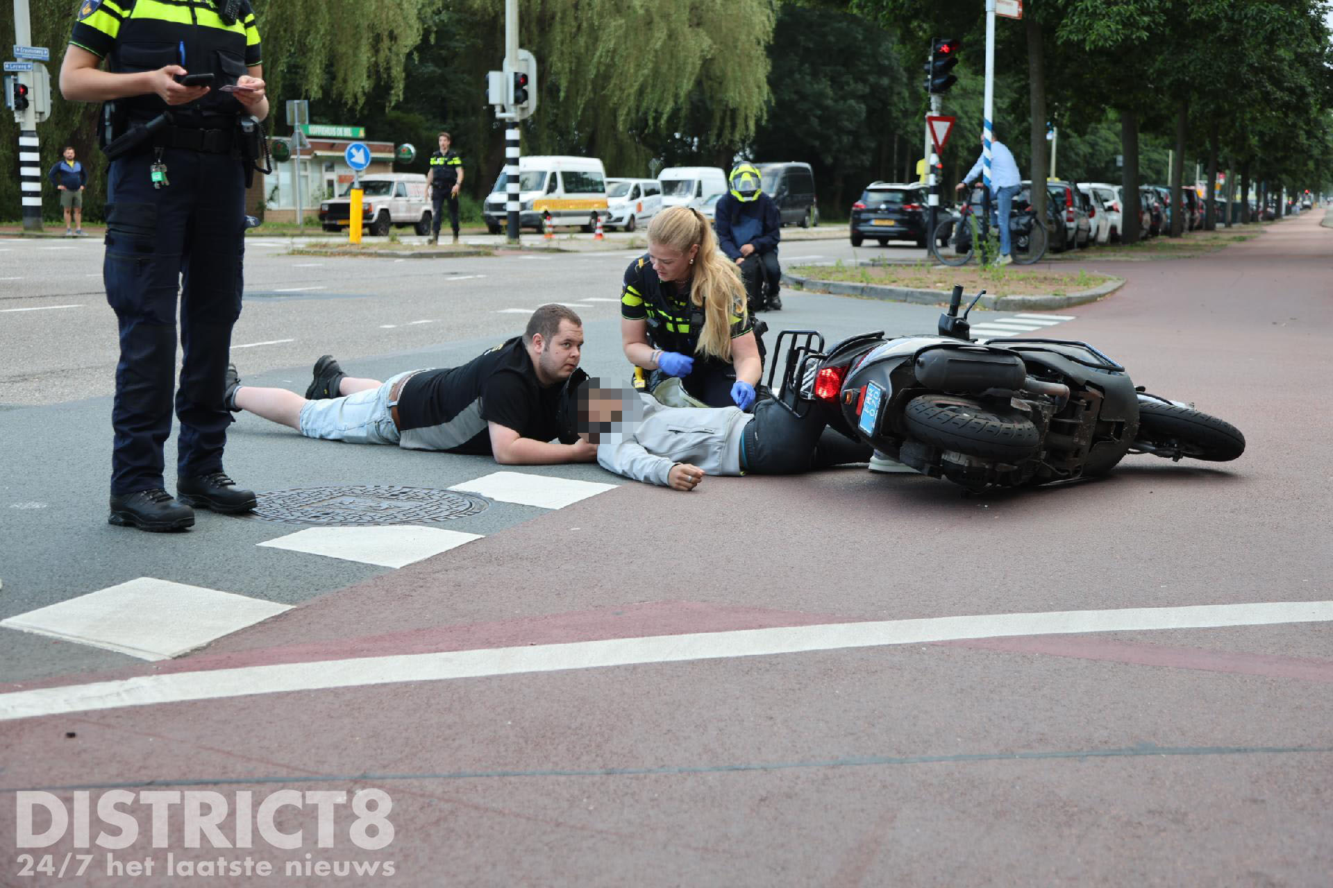 De scooterrijder kwam hard ten val en raakte gewond. Een ambulance kwam met spoed ter plaatse.