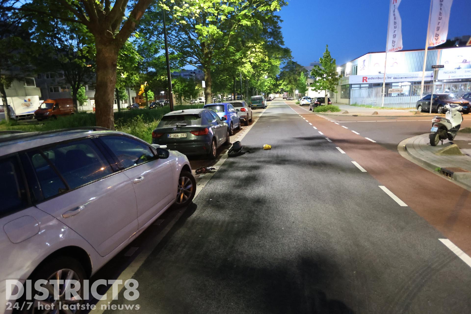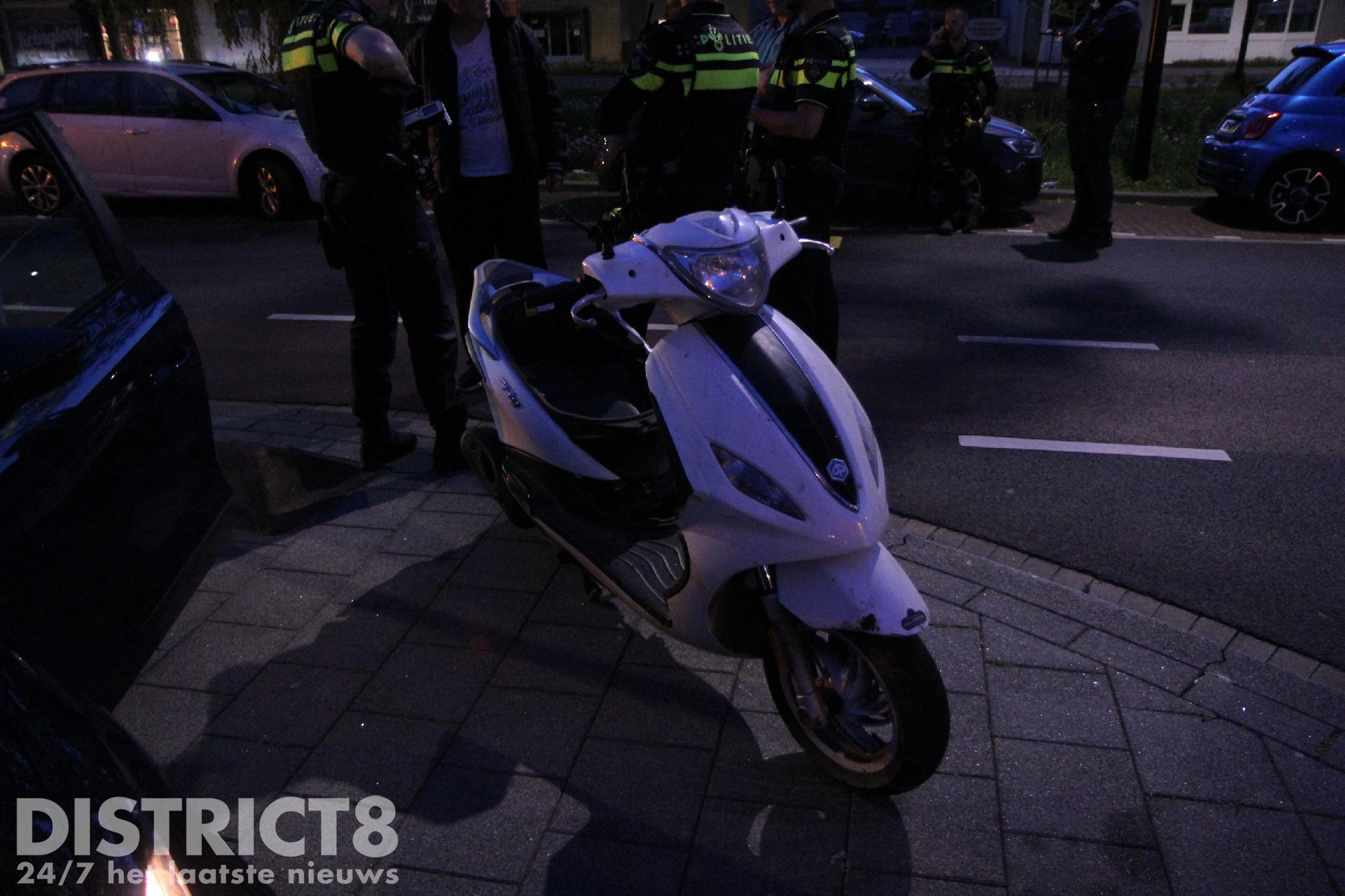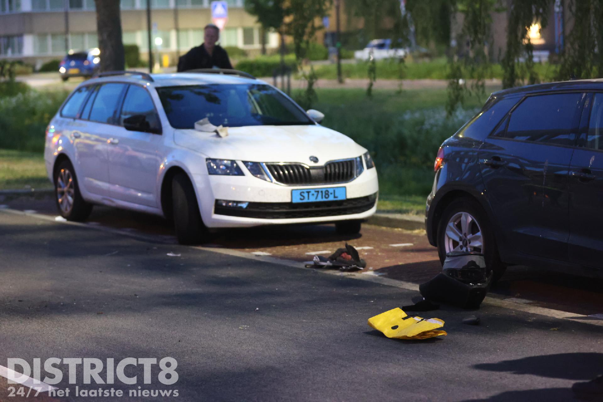 De scooter en de geparkeerde auto raakte beide beschadigd.