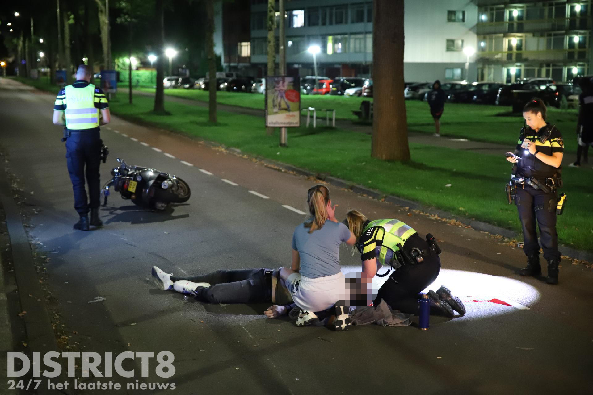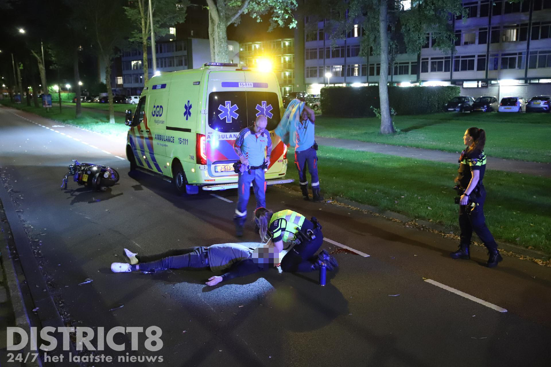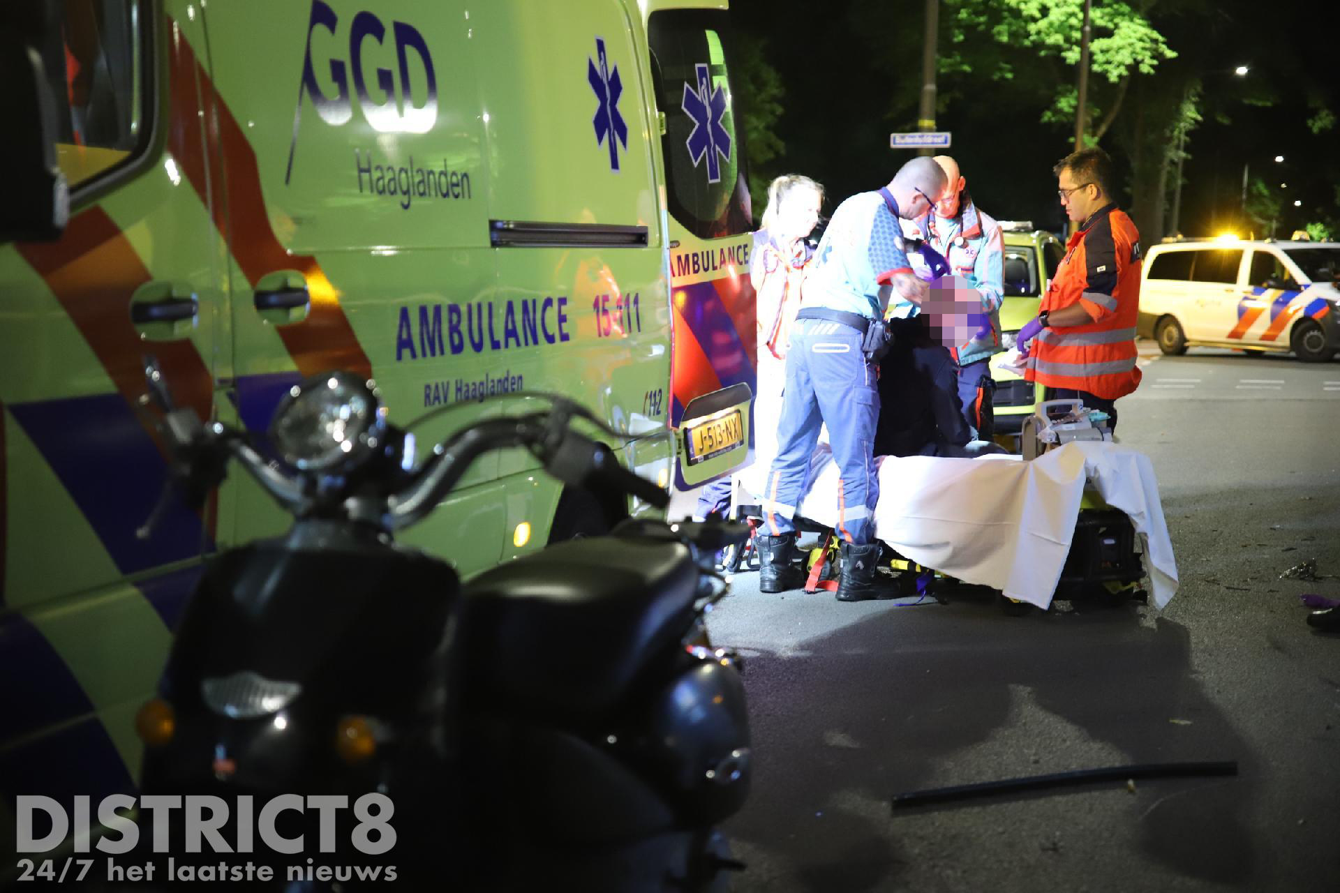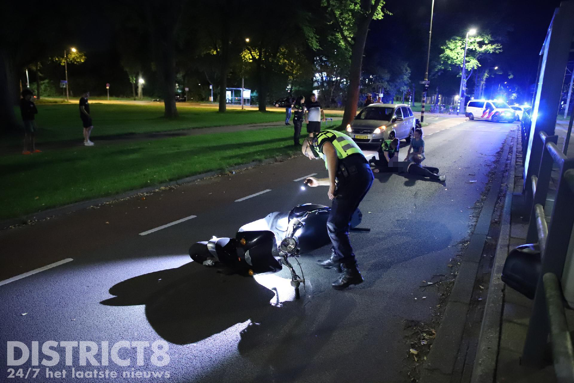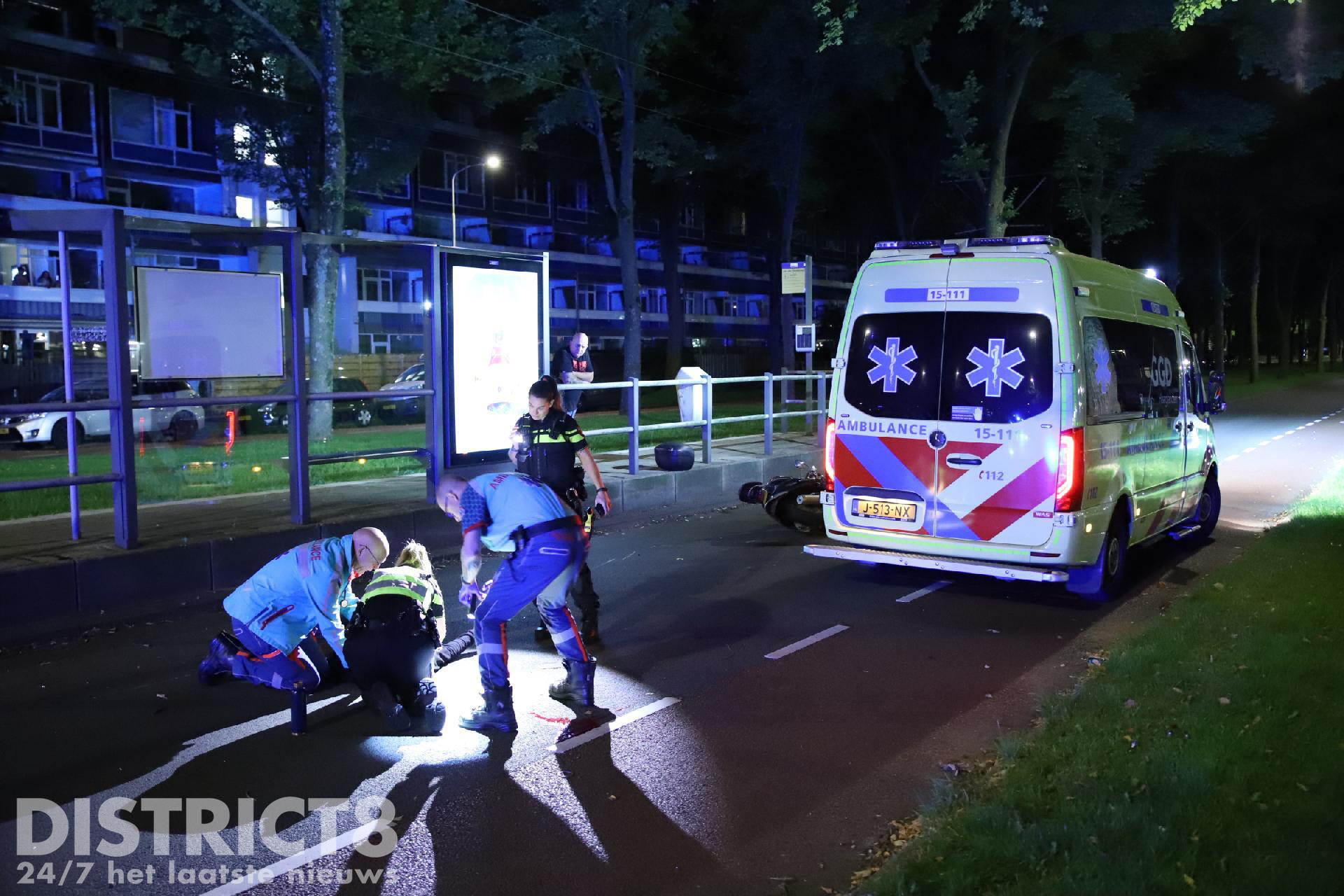 Ter plaatse bleek de scooterrijder tegen een verhoging van de tramhalte gereden te zijn, hierna is hij met scooter en al ten val gekomen. Ter plaatse gekomen agenten hebben het slachtoffer gestabiliseerd in afwachting van de ambulance. Niet veel later heeft het ambulancepersoneel de behandeling overgenomen. Het MMT is met de auto ter plaatse gekomen.