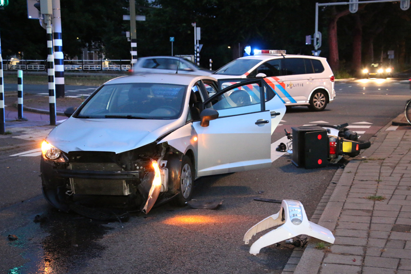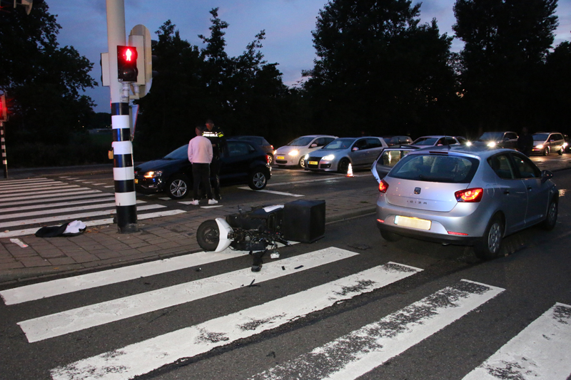 De scooterrijder werd door een auto geschept op de oversteekplaats. De scooterrijder raakte hierbij gewond. Ambulancepersoneel heeft de bestuurder gecontroleerd en daarna zonder spoed vervoerd.