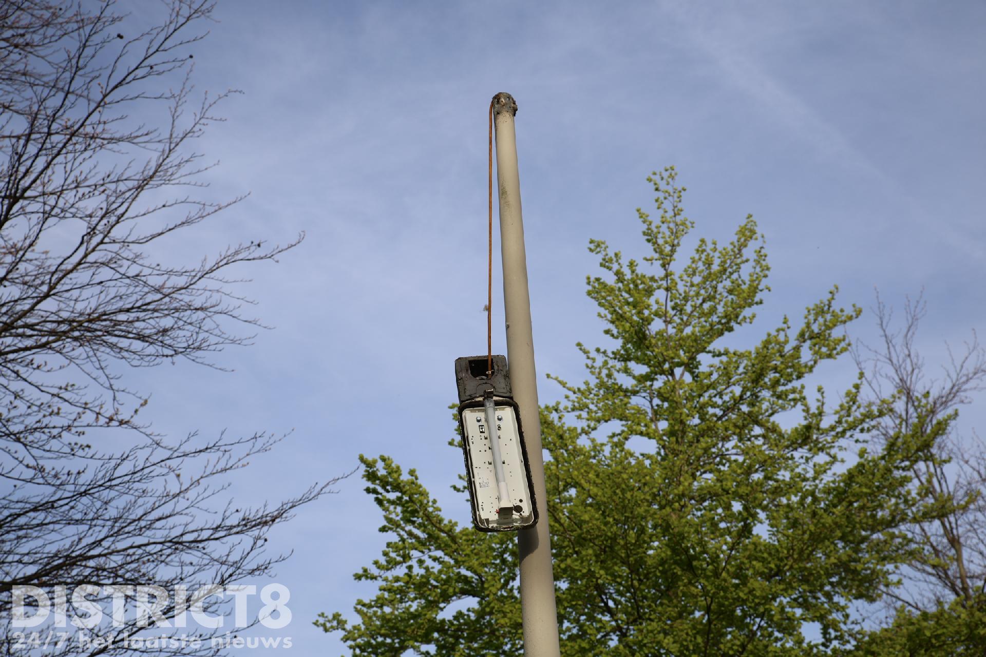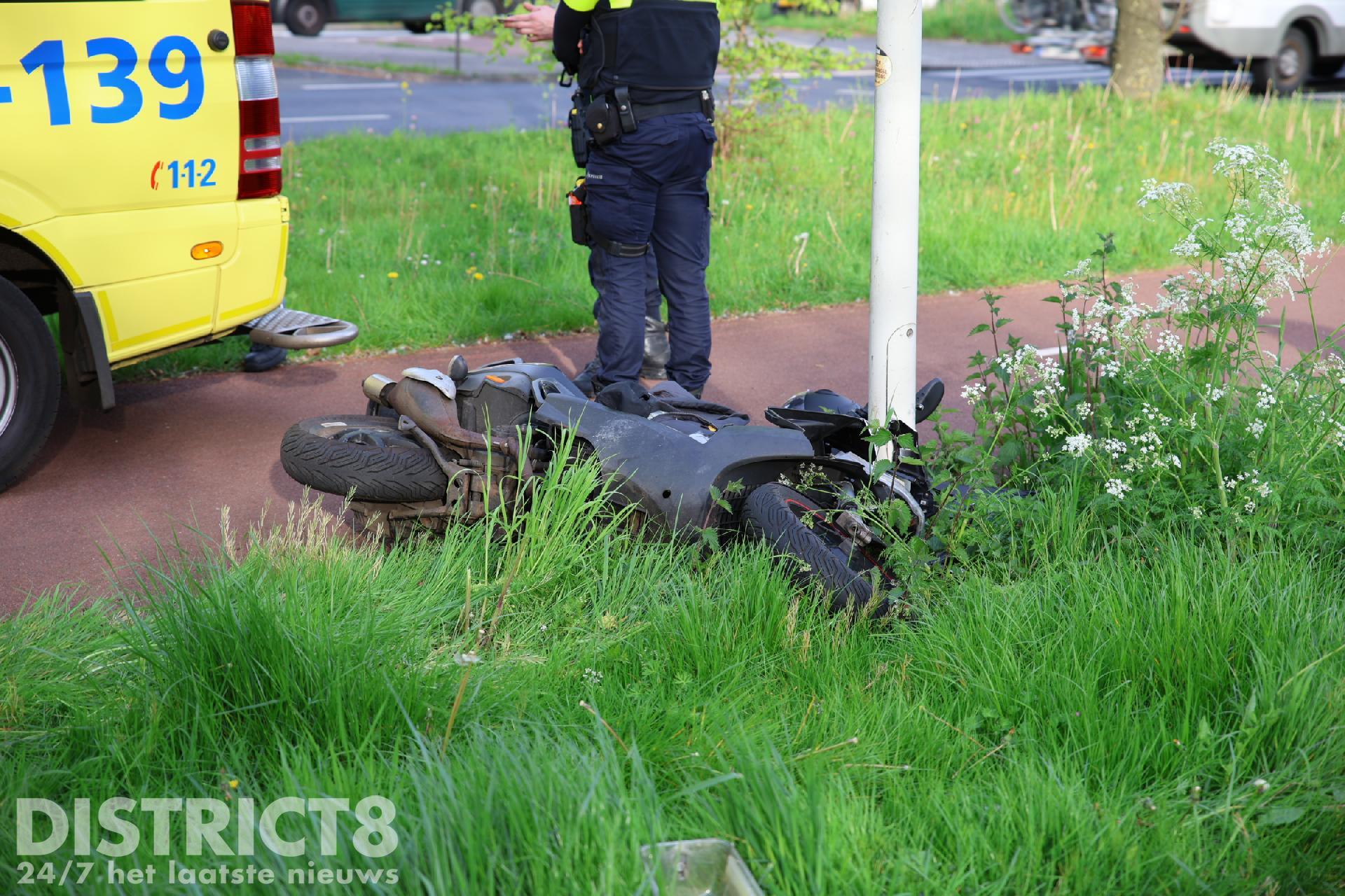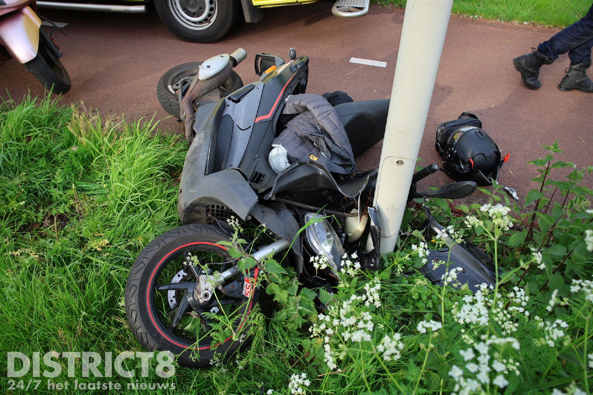 De scooter is flink beschadigd. De gemeente wordt op de hoogte gesteld om de lichtmast te repareren.
