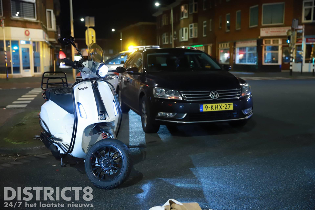 Den Haag – Op de kruising van de Kempstraat met de De la Reyweg in Den Haag is in de nacht van zondag op maandag 7 maart een scooterrijder gewond geraakt nadat deze in botsing was gekomen met een personenauto.