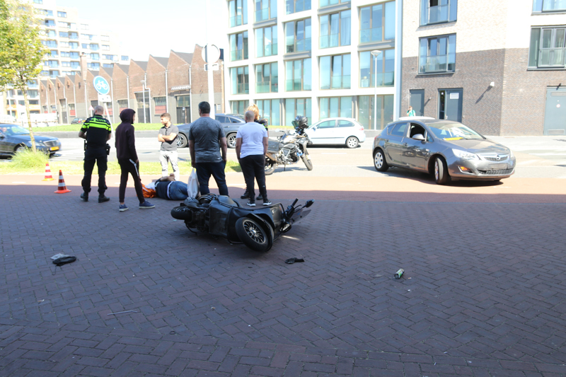 Den Haag – Op de Waldorpstraat in Den Haag heeft maandagmiddag 14 juni een aanrijding plaatsgevonden tussen een scooterrijder en een personenauto.