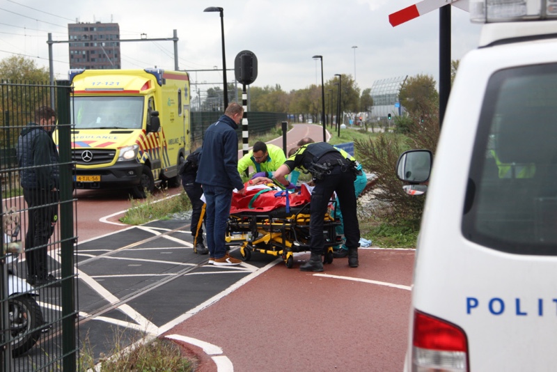 Vlaardingen – Een bestuurder van een snorscooter is maandagmiddag lelijk ten val gekomen toen hij ter hoogte van de spoorovergang uit de bocht vloog.