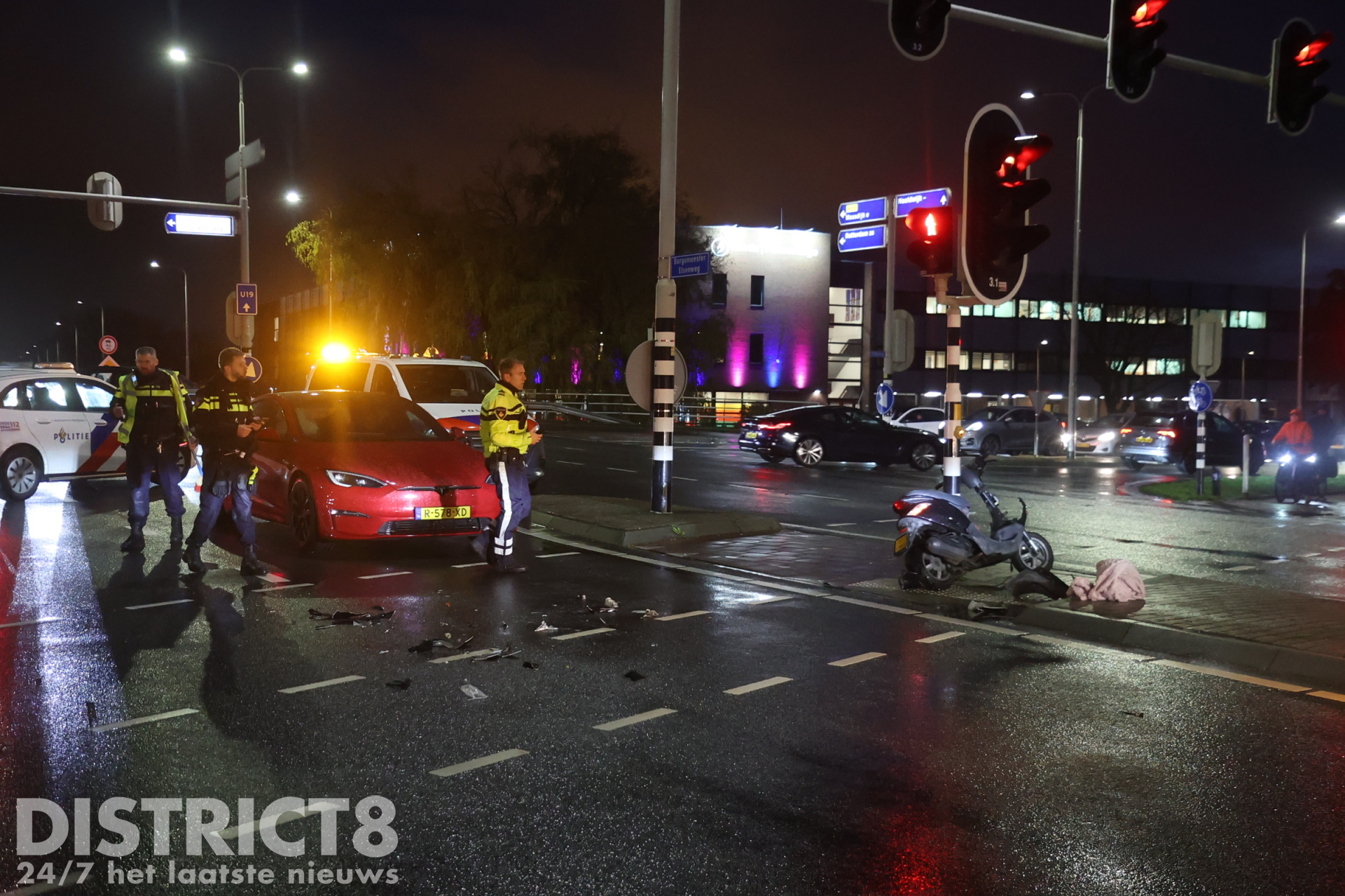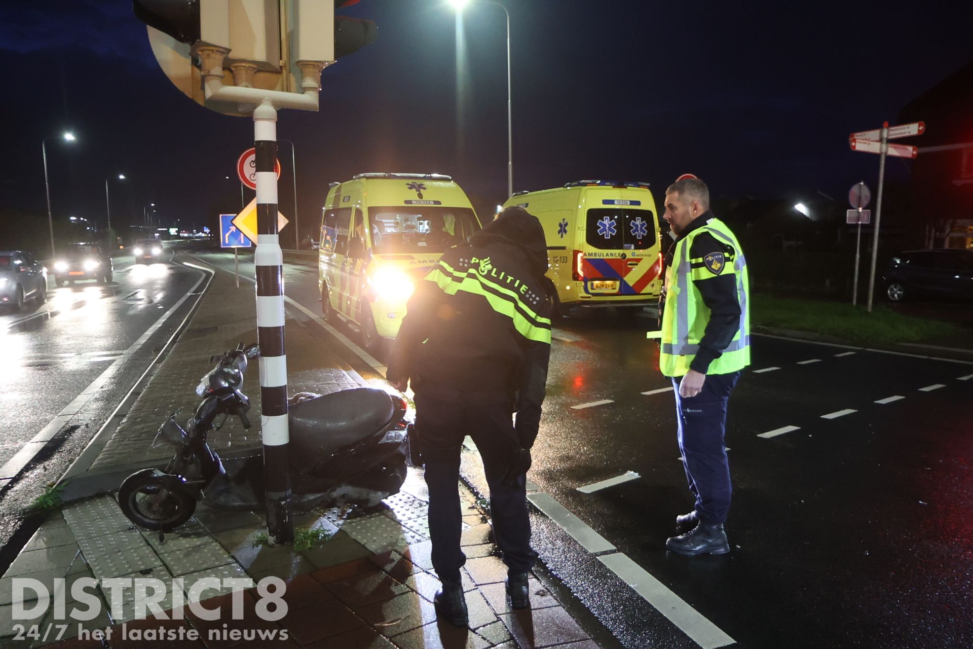 Naaldwijk – Op de kruising van de Burgemeester Elsenweg met de Dijkweg heeft dinsdagavond 25 november een aanrijding plaatsgevonden tussen een auto en een scooter. De scooterrijder raakte gewond bij het ongeval.