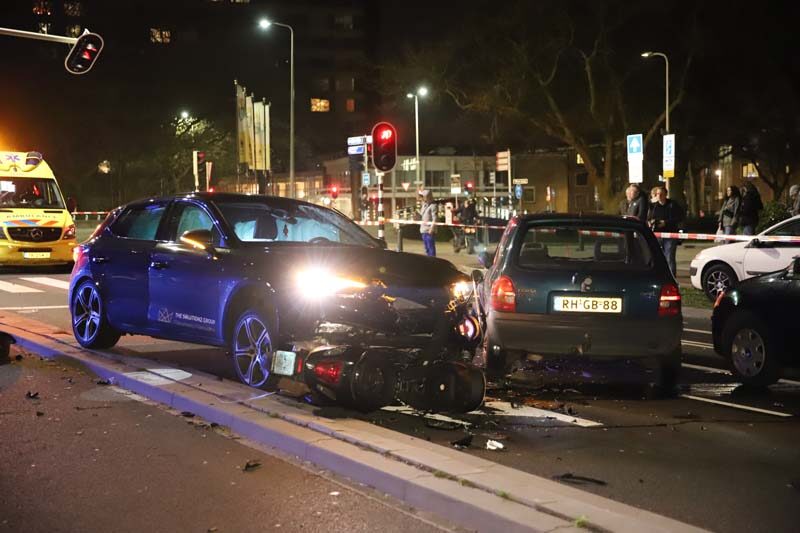 Den Haag – Op het Erasmusplein met de Erasmusweg heeft vrijdagavond 9 april een aanrijding plaatsgevonden tussen een auto en een bromfiets.