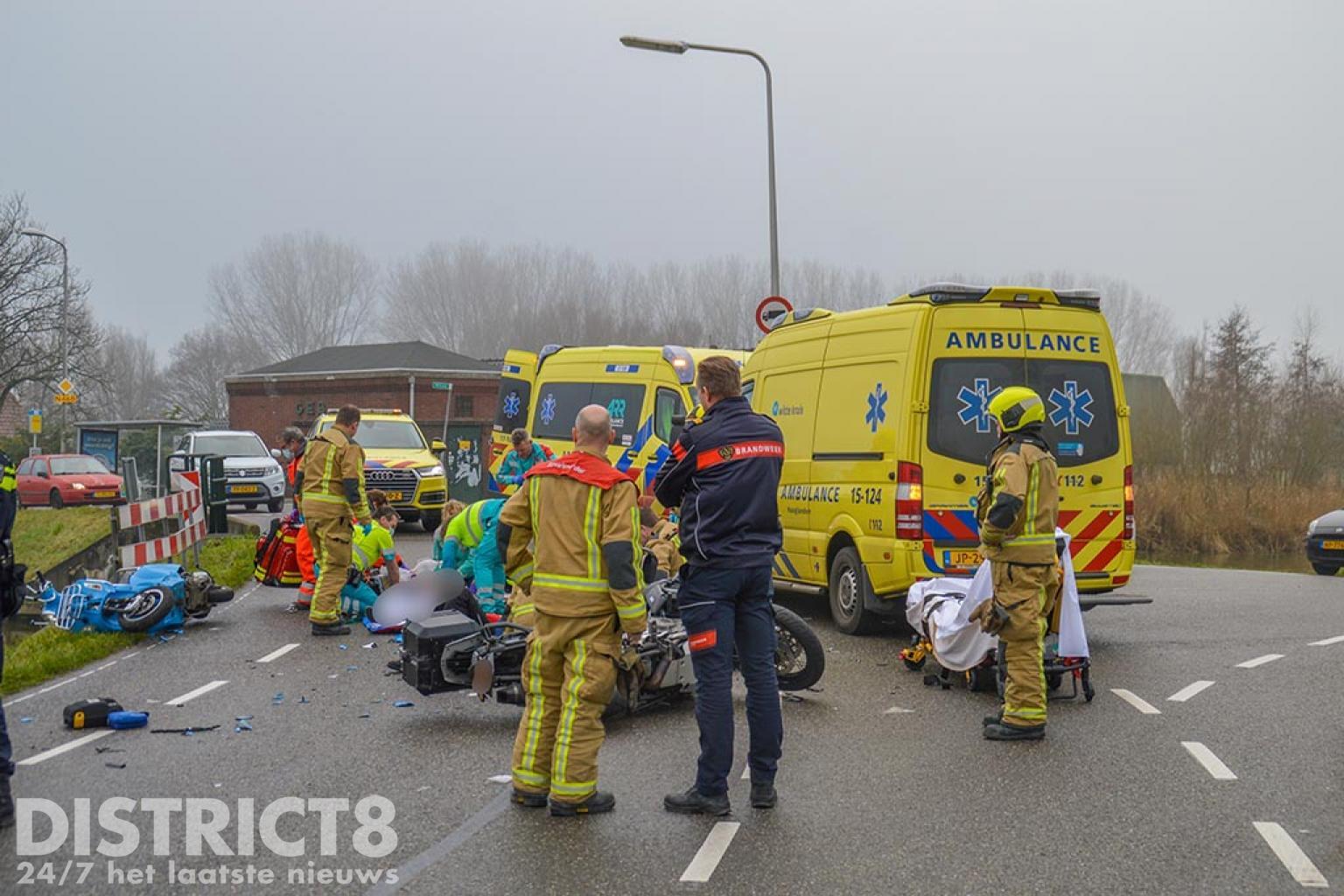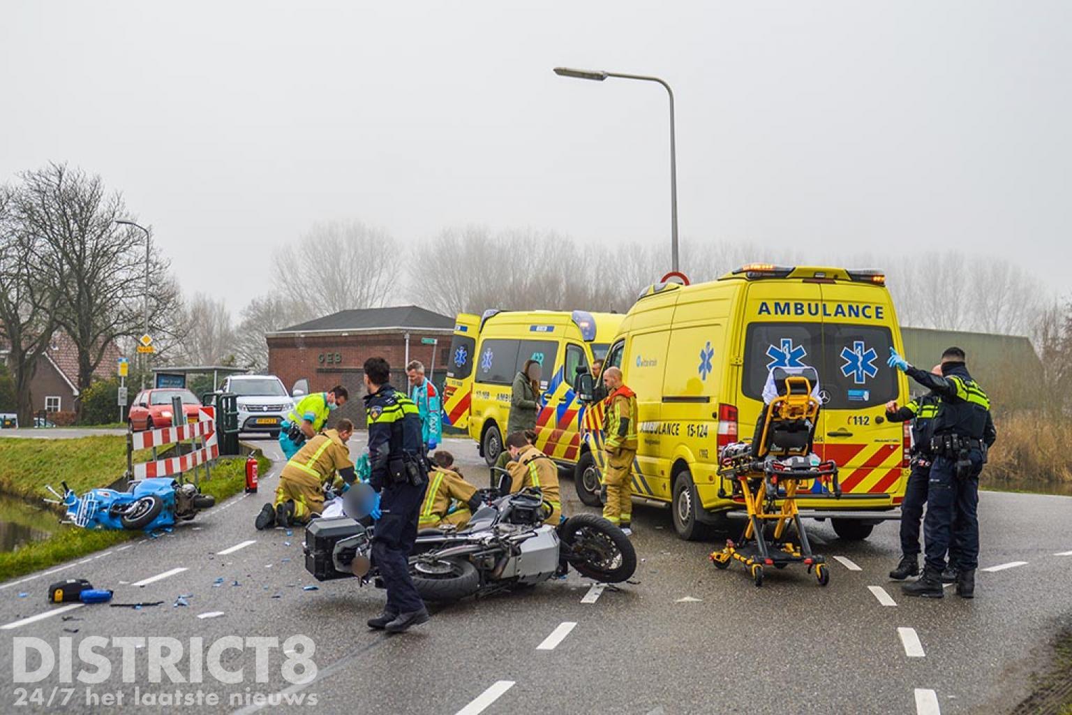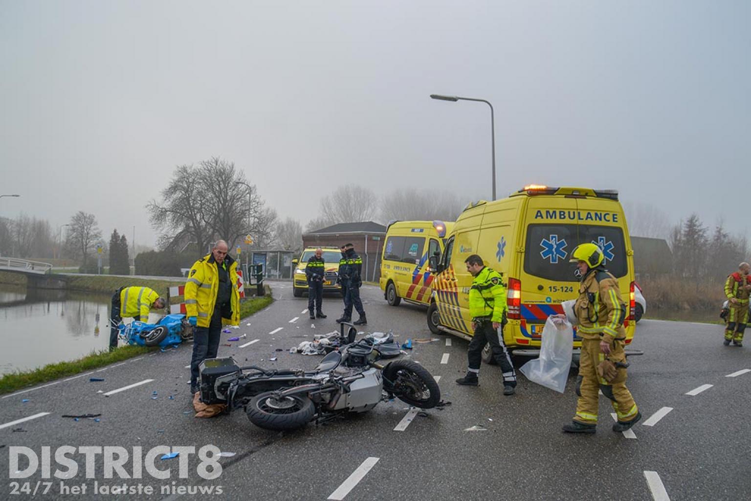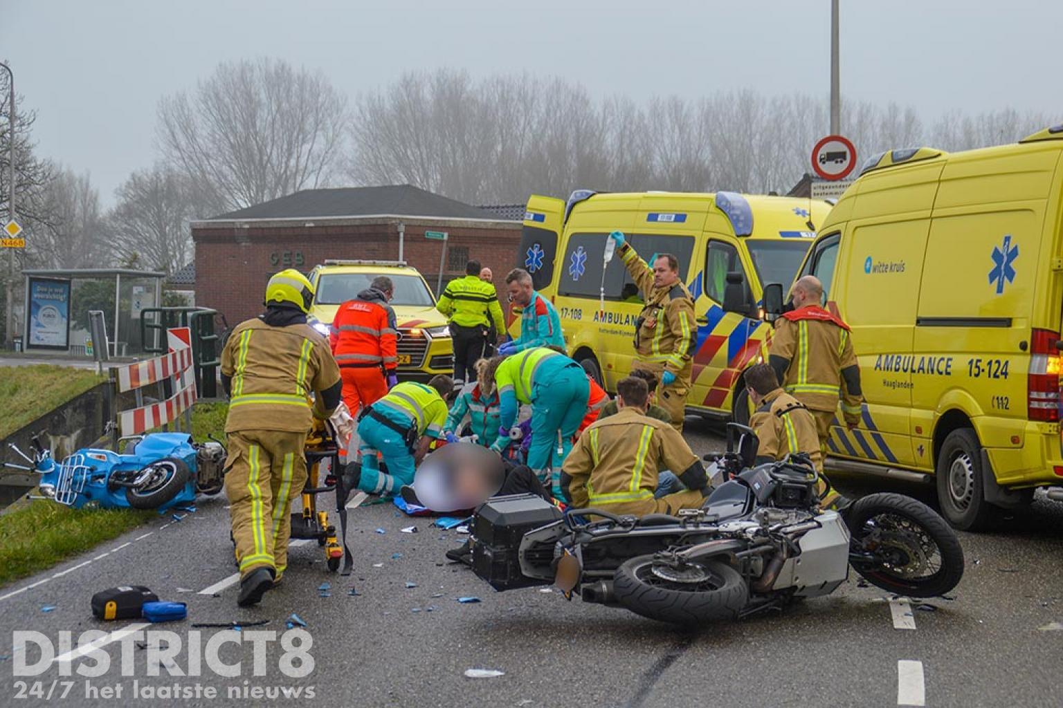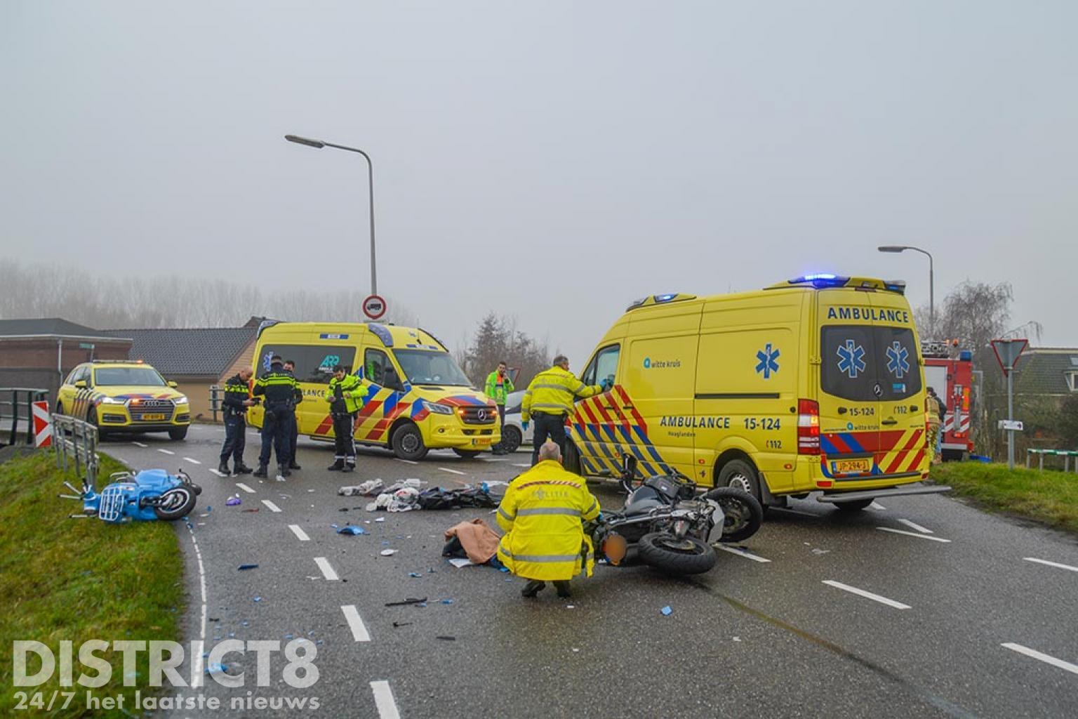De twee voertuigen reden tegelijkertijd op het kruispunt. De motorrijder is door een nog onbekende oorzaak tegen de zijkant van de scooter geklapt. De scooterrijder raakte zwaar gewond. Voor dit slachtoffer kwam ook het Mobiel Medisch Team ter plaatse. De scooterrijder moest onder andere geïntubeerd en beademd worden. De motorrijder raakte ook gewond.