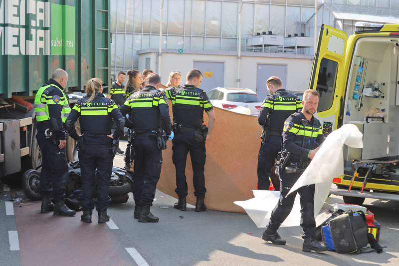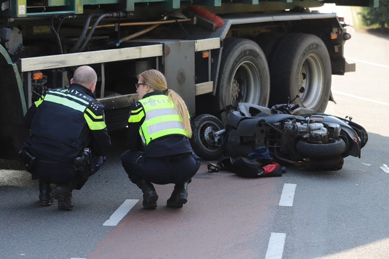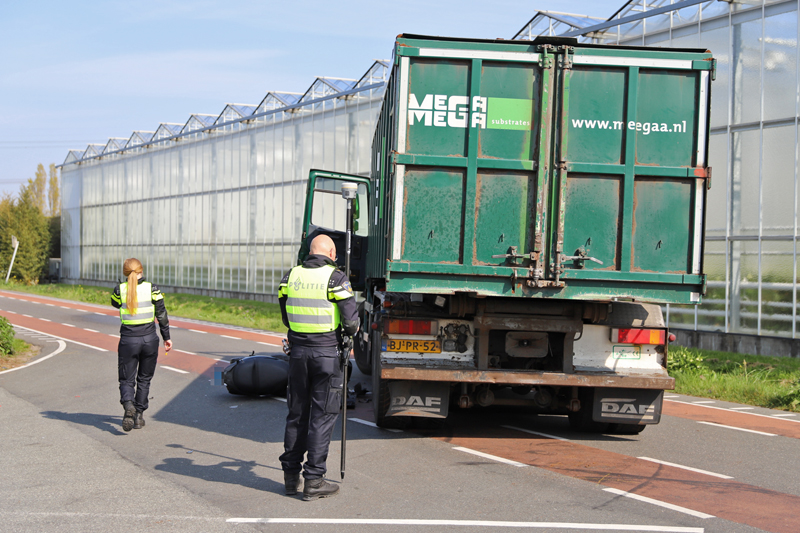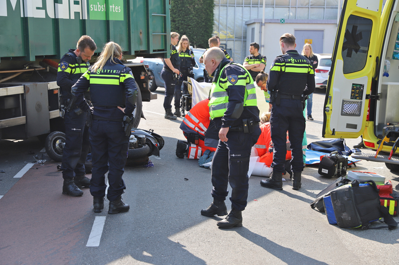 Den Hoorn – Aan de Veenakkerweg in Den Hoorn heeft dinsdagmiddag 16 april een ongeval geweest tussen een vrachtwagen en een scooter.