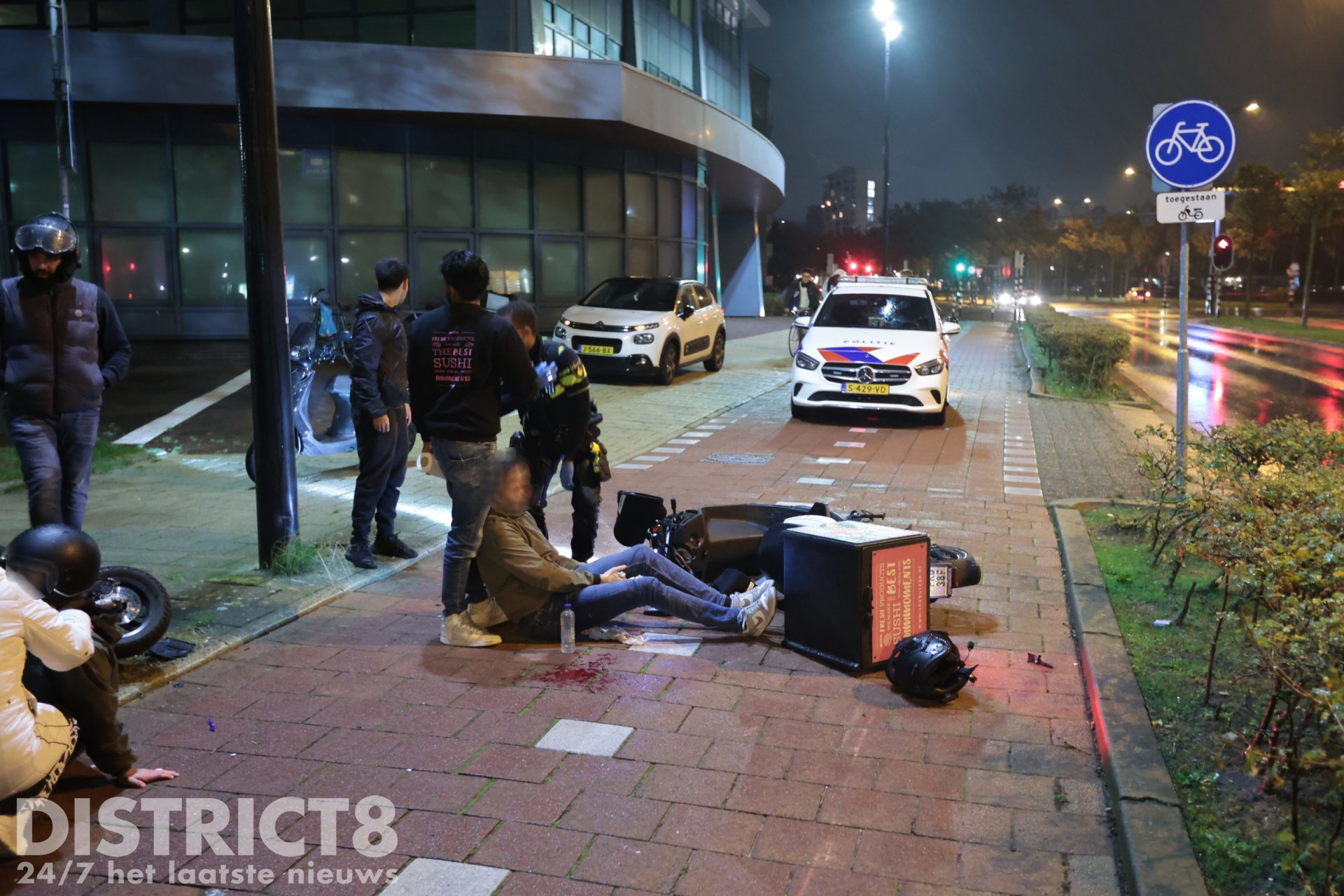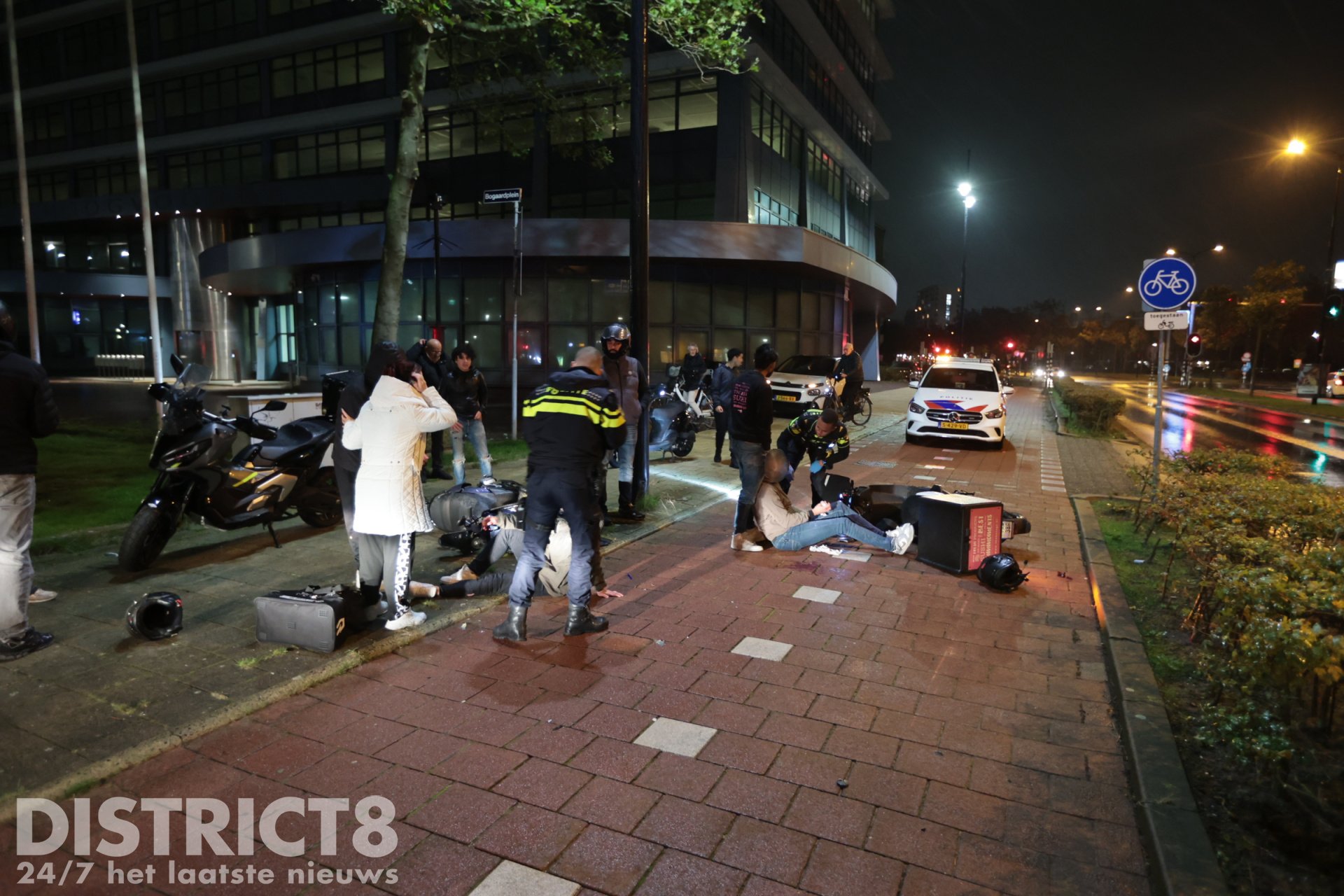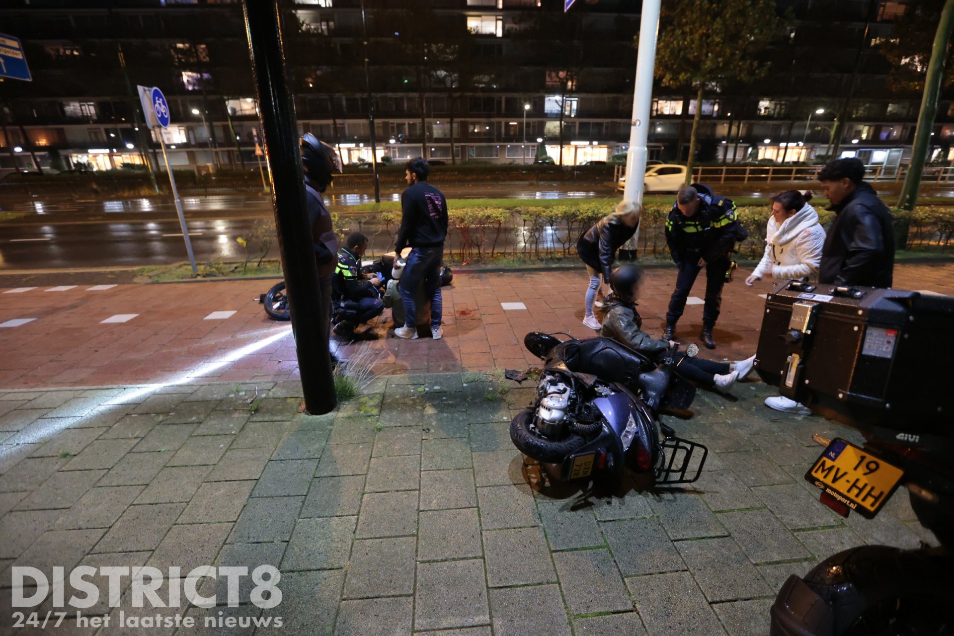 Door een nog onbekende oorzaak botste beide scooterrijders tegen elkaar aan. Twee personen kwamen hard ten val en raakte gewond.