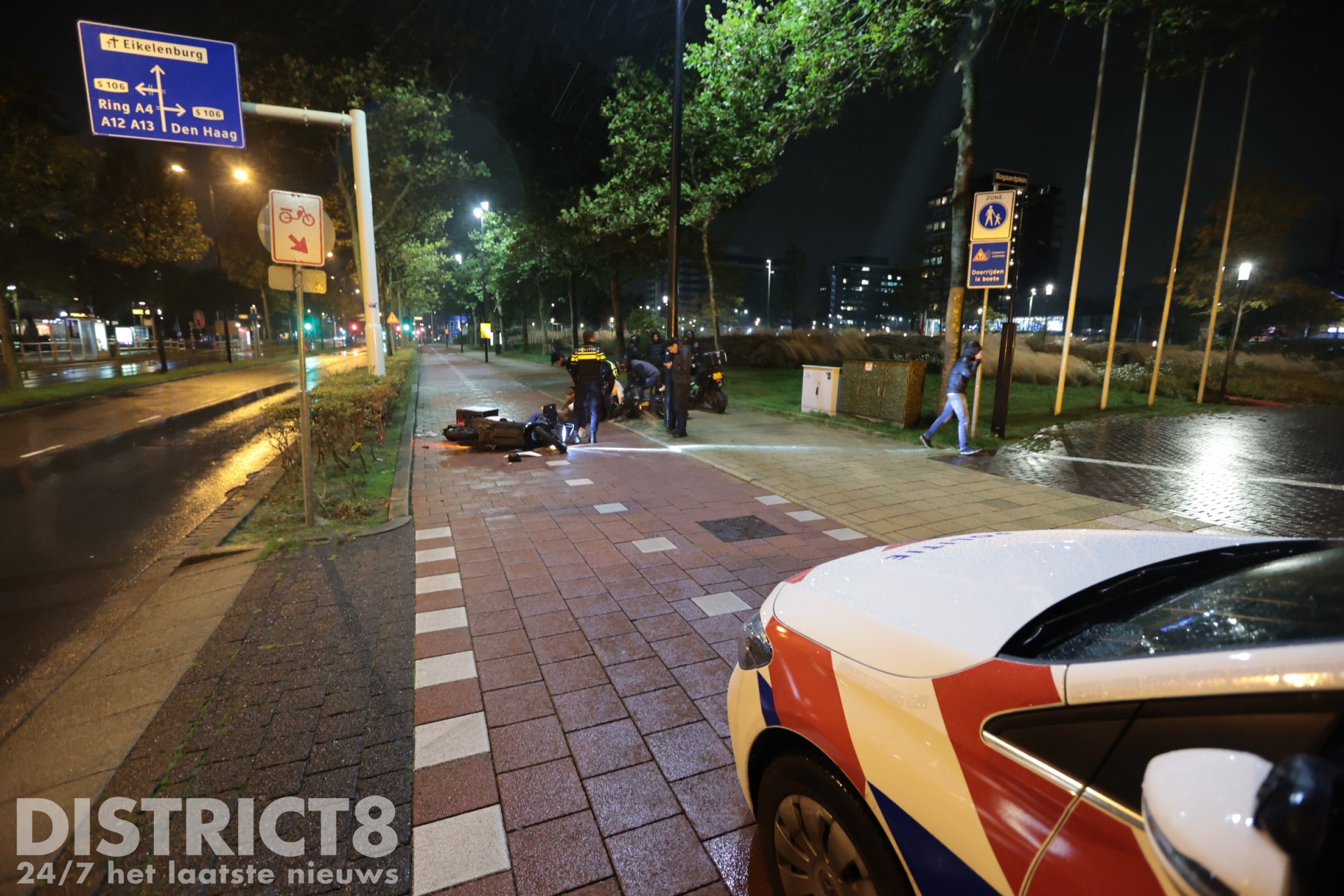 Rijswijk – Op het fietspad aan de Sir Winston Churchillaan kruising Bogaardplein in Rijswijk zijn zaterdagavond 12 oktober twee scooterrijders tegen elkaar aan gebotst.