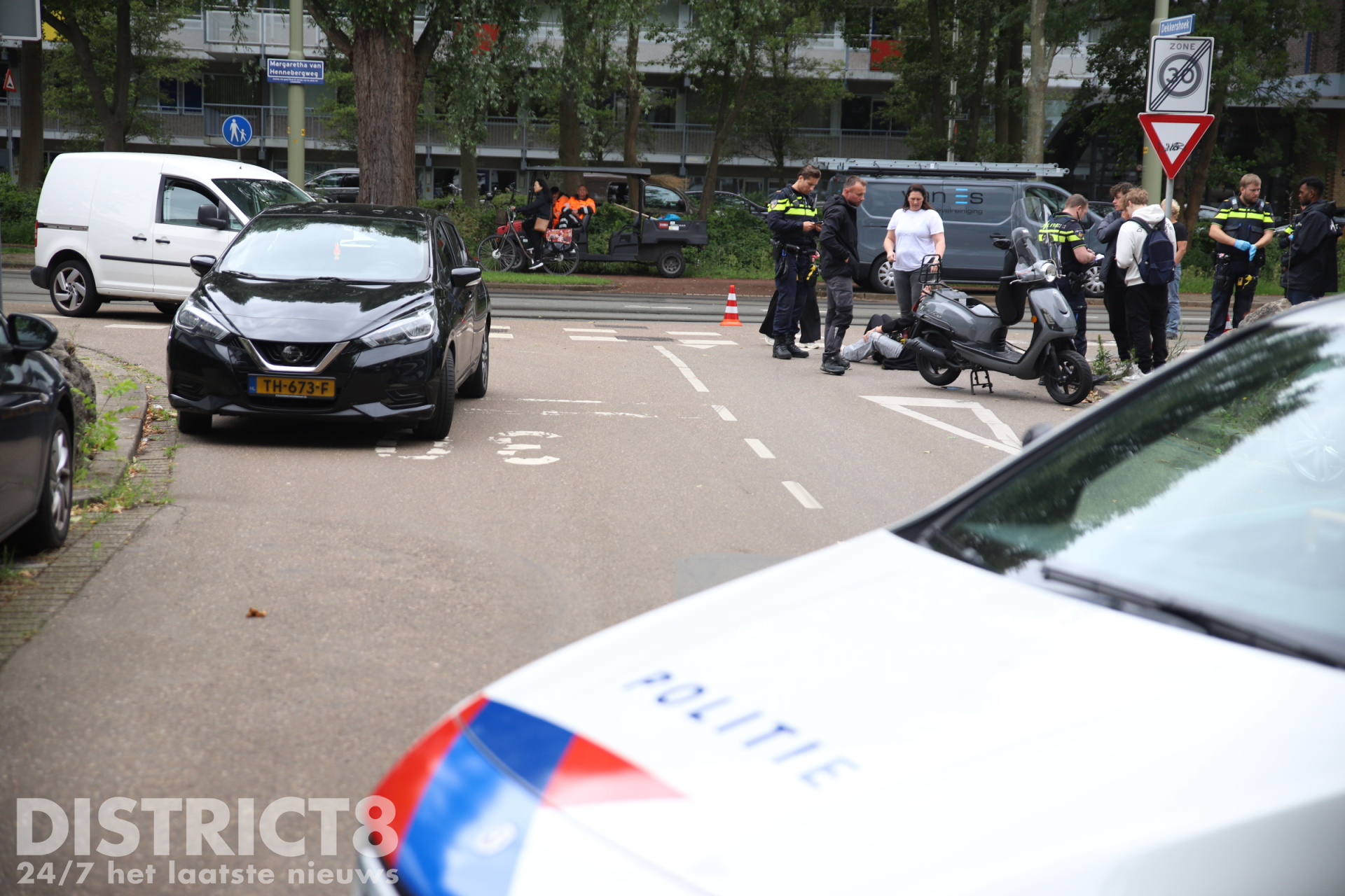 Den Haag – Op de Dekkershoek in Den Haag is dinsdagmiddag een scooterrijdster aangereden door een automobilist.
