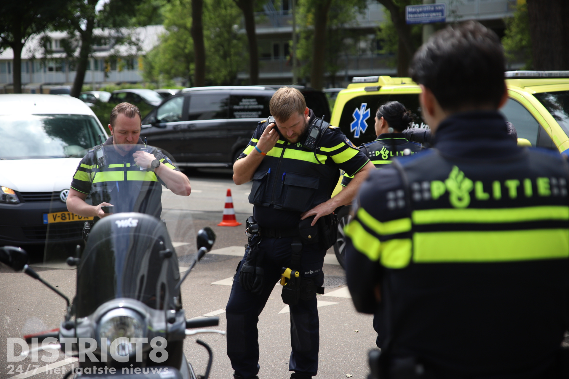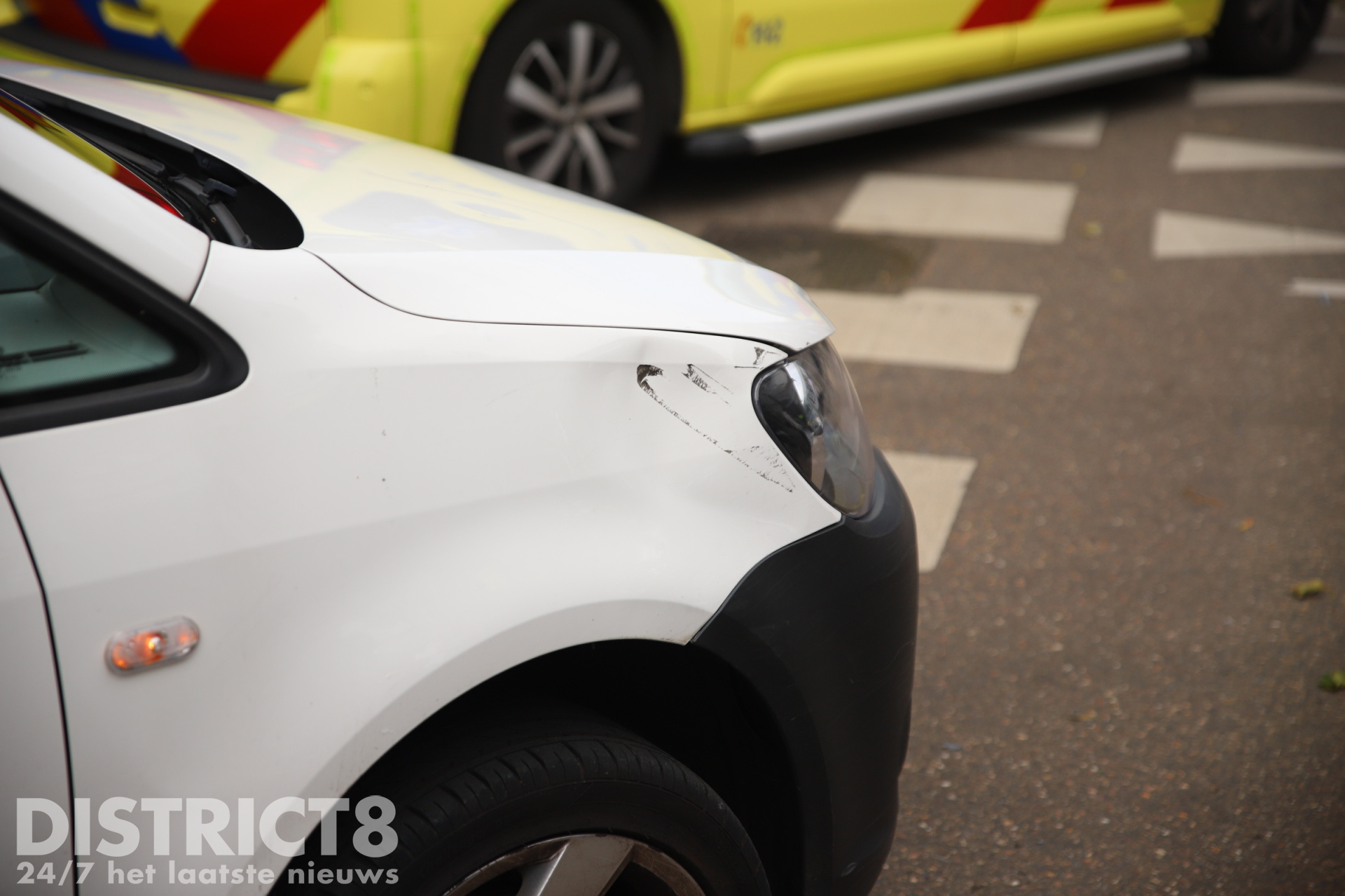 Een botsing was niet meer te voorkomen. De vrouw raakte gewond, maar hoefde na controle niet mee naar het ziekenhuis. Zij is per auto naar huis gebracht.