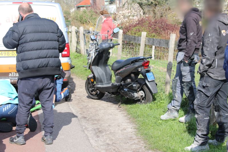De scooterrijdster kwam na de aanrijding hard ten val en raakte gewond. Een ambulance kwam met spoed ter plaatse. Het slachtoffer is gefixeerd in het vacuümmatras en is gecontroleerd in de ambulance. Na controle is het slachtoffer zonder spoed (A2) naar het ziekenhuis vervoerd.