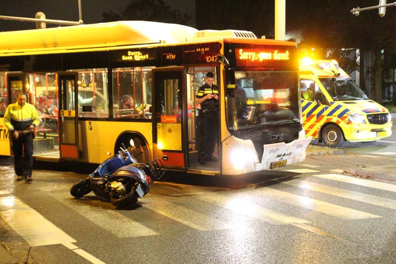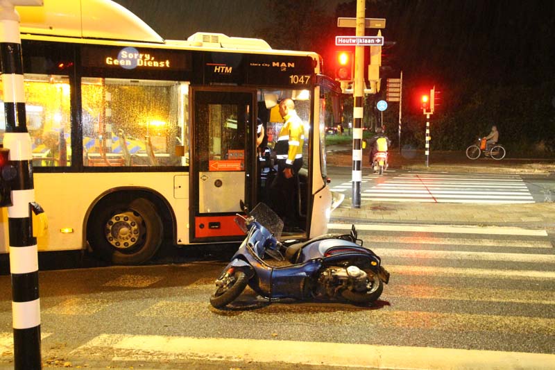 Den Haag – Op de kruising van de Escamplaan met de Houtwijklaan in Den Haag heeft vrijdagavond 9 september een aanrijding plaatsgevonden tussen een stadsbus en een scooter. De stadsbus wilde rechts afslaan vanaf de Escamplaan richting de Houtwijklaan, echter zag hij de naderende scooterrijdster over het hoofd.