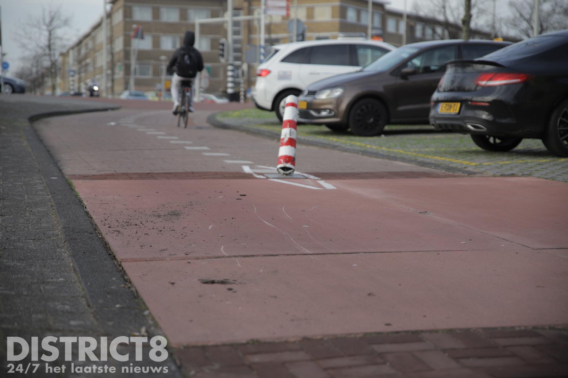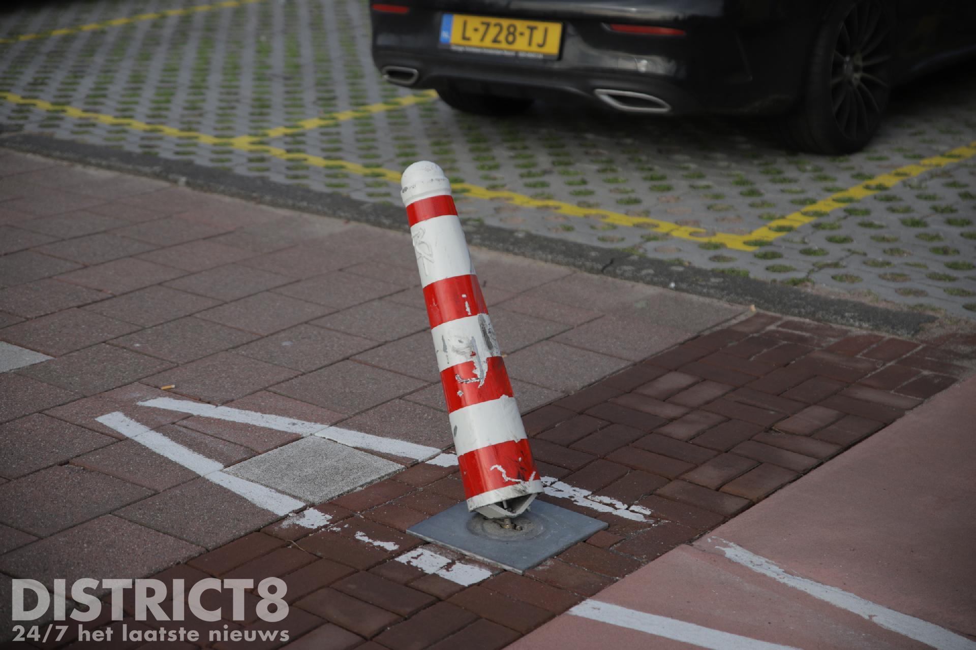 Het paaltje is door de aanrijding komen te staan. De scooter liep lichte schade op.