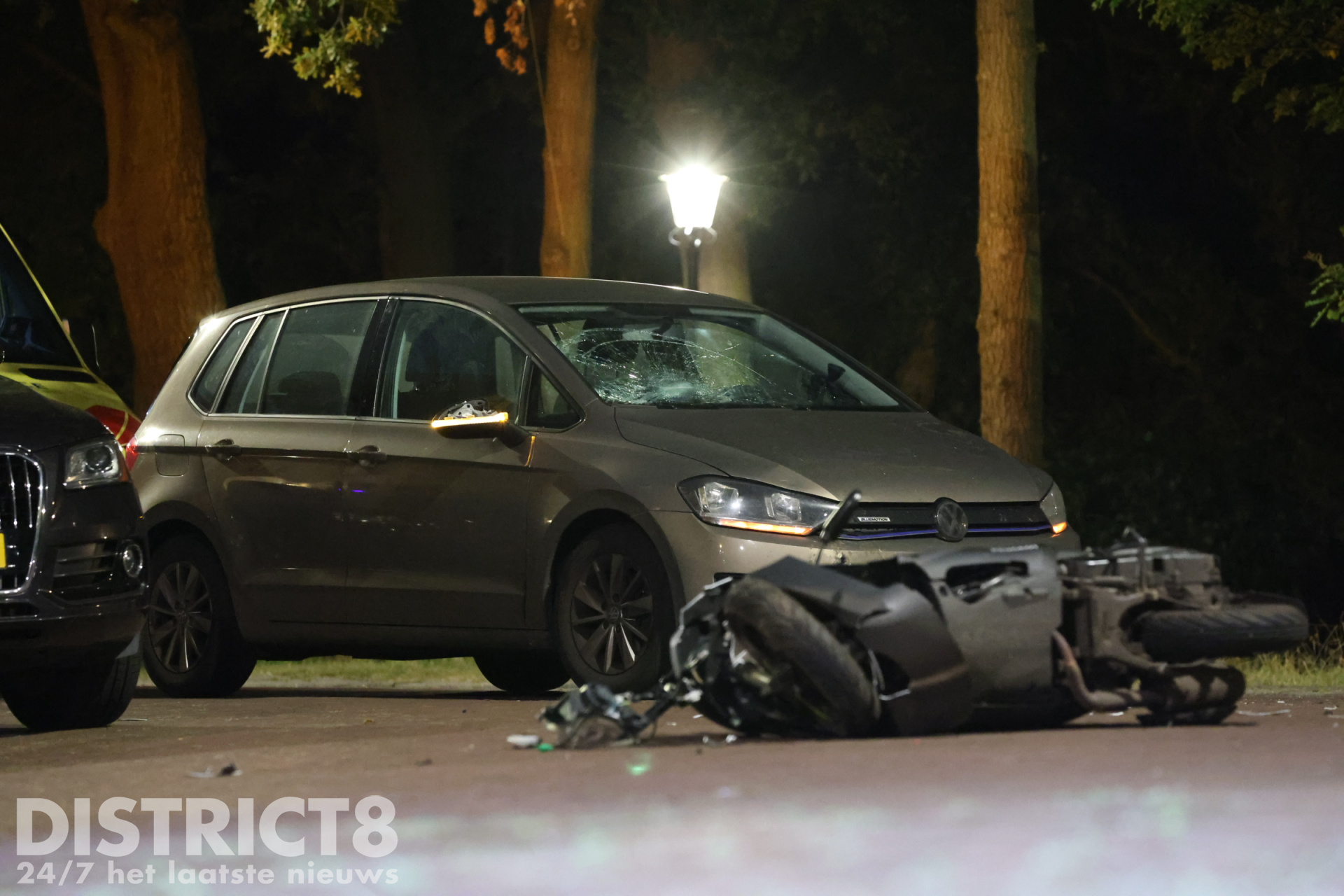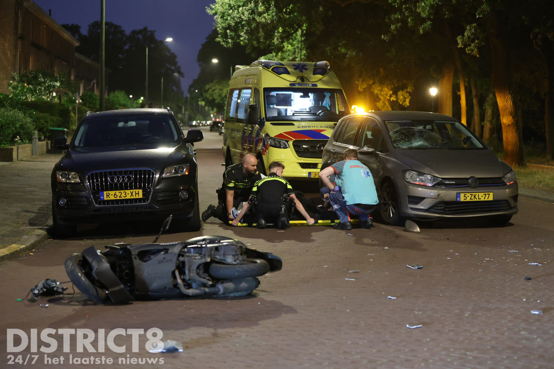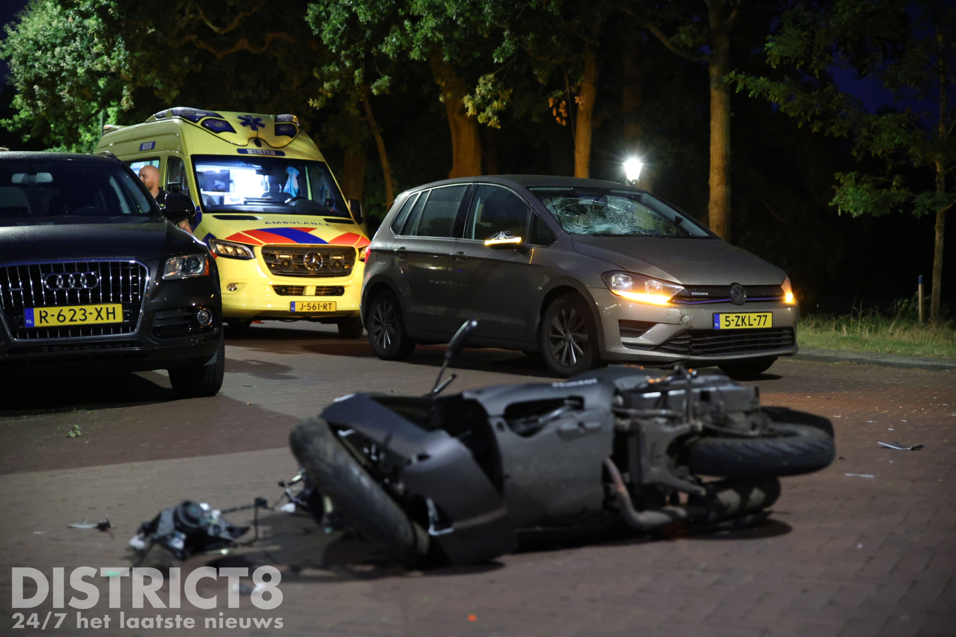 Zowel de auto als de scooter hebben flinke schade opgelopen door de aanrijding, het wegdek ligt bezaaid met brokstukken. De verkeerspolitie kwam ter plaatse om te kijken of nader onderzoek noodzakelijk was, hier bleek geen sprake van. De auto wordt door een berger afgevoerd.