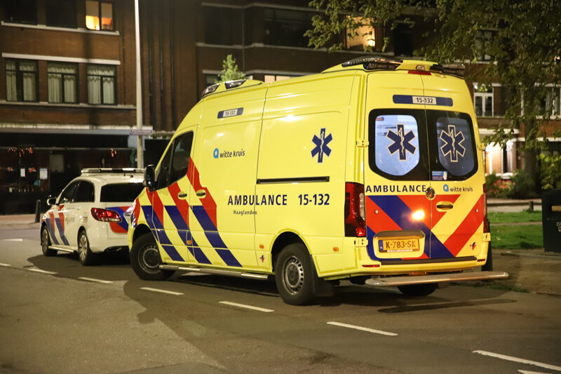 Een ambulance kwam met spoed ter plaatse. Het slachtoffer wordt door het ambulancepersoneel gecontroleerd.