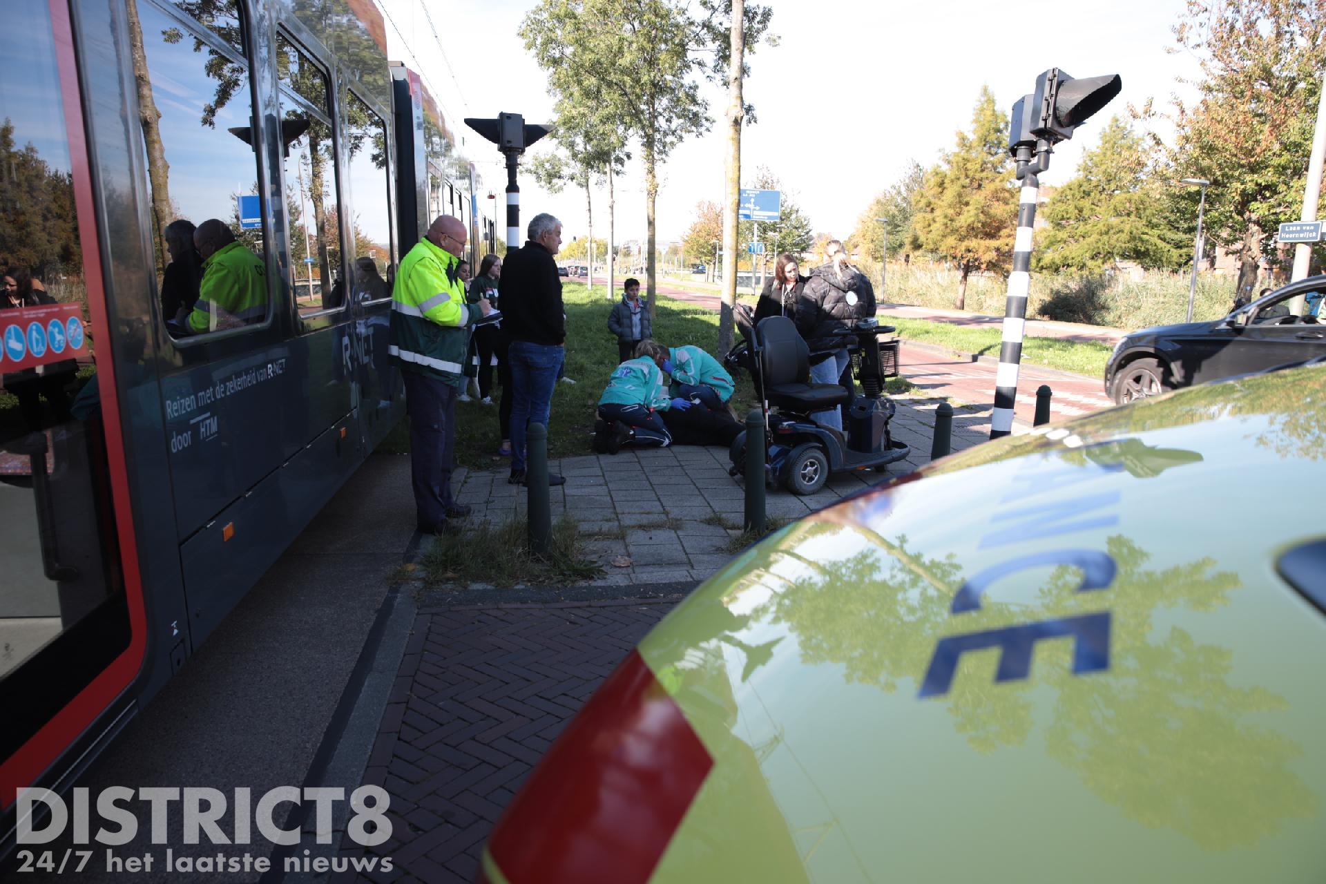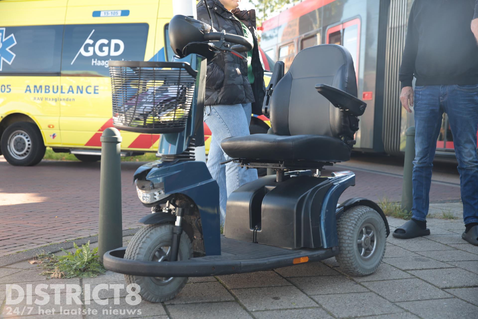 Den Haag – Op de kruising van de Lindberghlaan met de Laan van Hoornwijck is een scootmobiel in botsing gekomen met een tram.