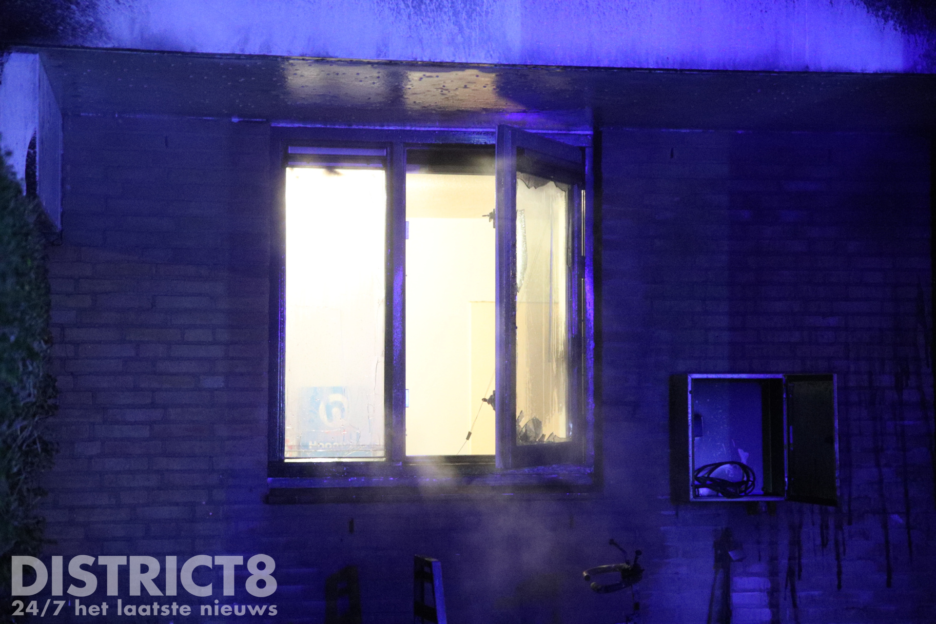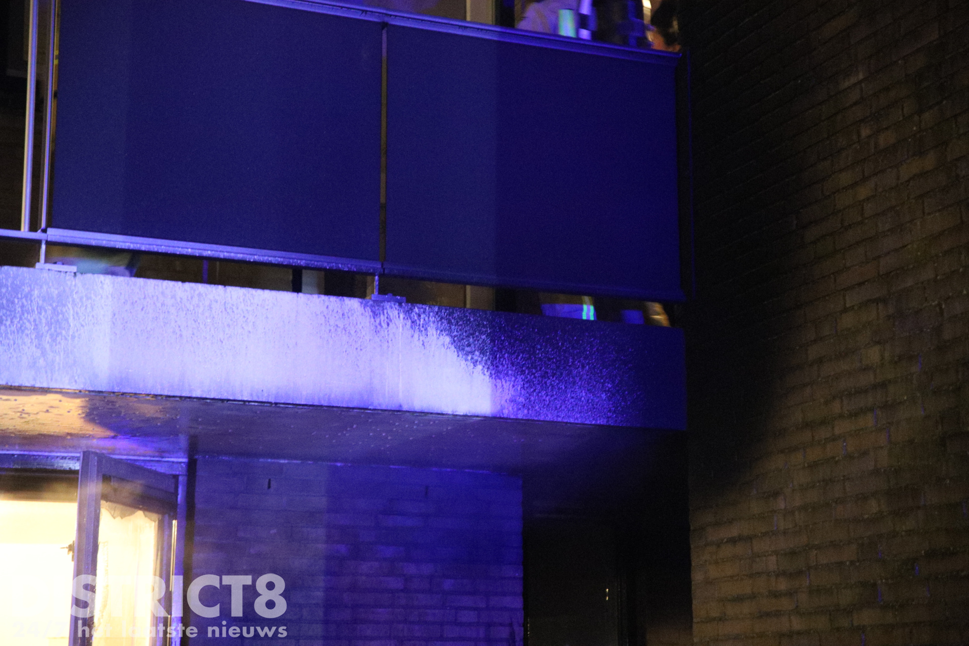 Zowel het raam, de gevel als de onderkant van het balkon hebben flinke schade opgelopen. Over de oorzaak is vooralsnog niets bekend.